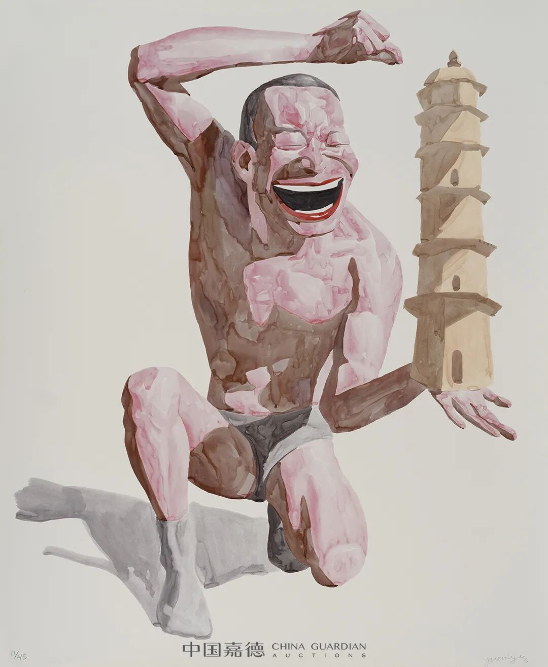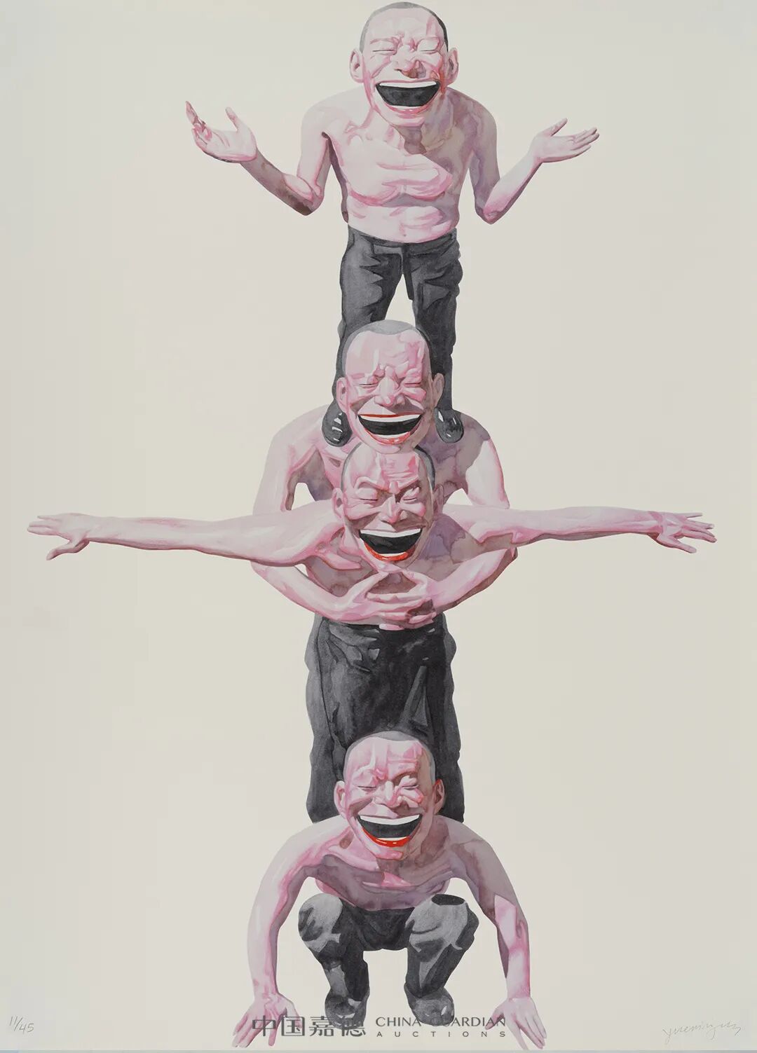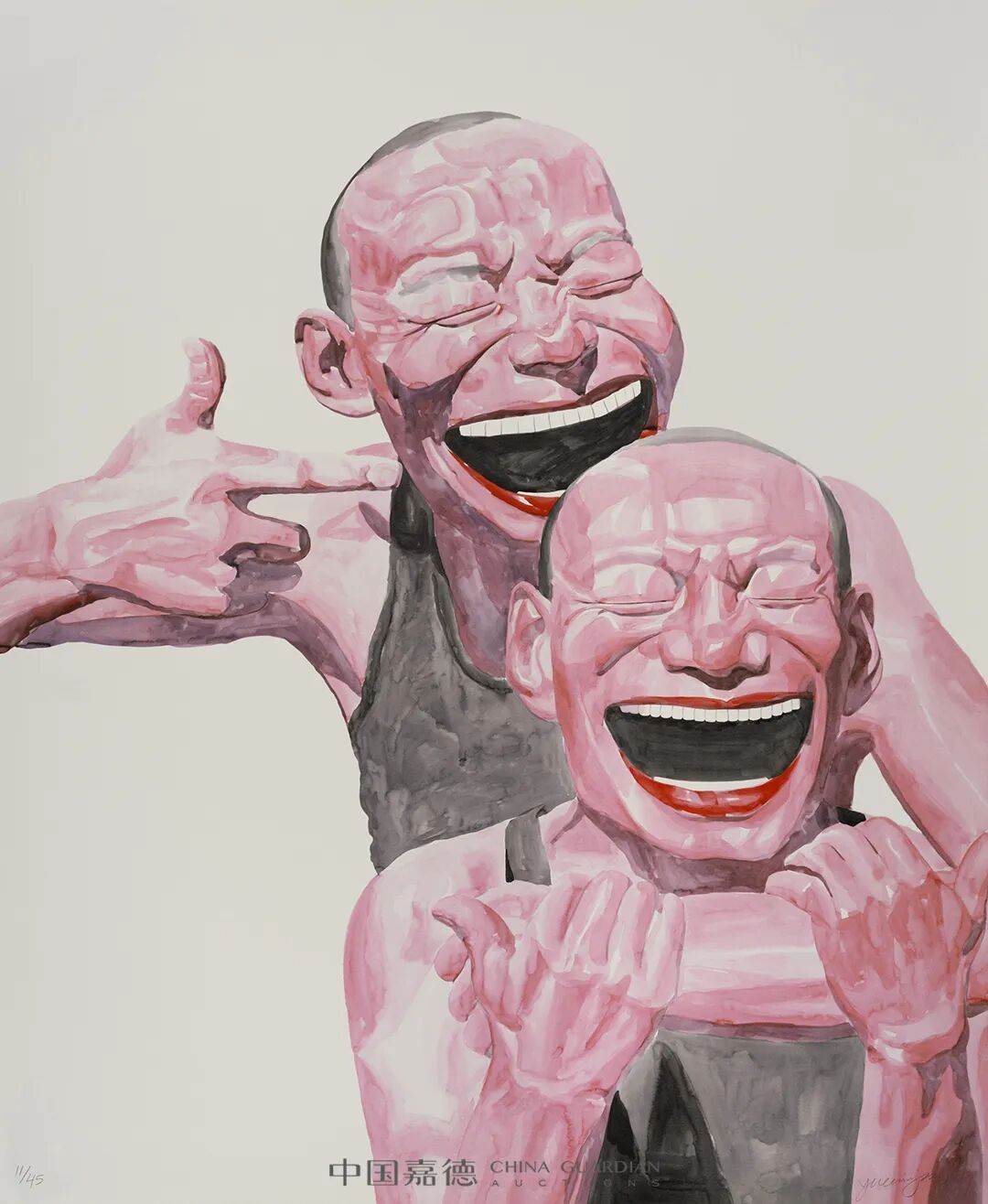 中国嘉德5月网拍特别推出“拈花微笑——岳敏君版画专场”,将这位中国当代艺术先锋的奇思妙想和辛辣讽刺齐集件“微笑主义”系列版画皆为岳敏君2006年所独创,画面区别于以往的岳氏油画,具有独立的收藏和欣赏价值。