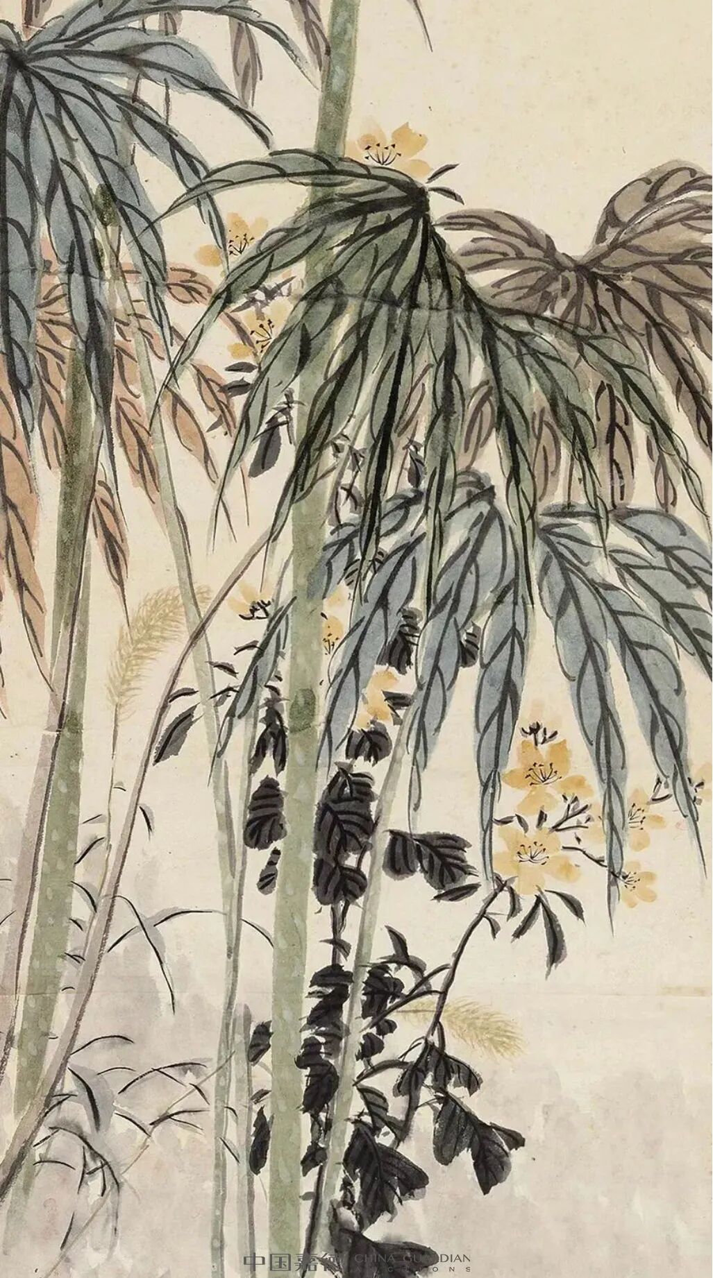 赵之谦天分极高,青年时代其书画篆刻已自成一格极为成熟,作画好写生,以目中所见之动、植物入画,类多古人所无者。此图画金盘莲、金丝桃、狗尾草,皆凡卉凡草,古文人画家罕以入画之物。然撝叔以淡逸之笔,洒落写出,参差适宜,粗细相间,色墨错杂,平凡中颇显奇致。金盘莲之花实、二杆直上,造境极险,右以一行浓墨破之,立现疏密倚侧之变化,化腐朽为神奇,而不着刻意造作之痕迹,故佳。从其款字看,当是三十余岁四十前所作。此后他赴江西编纂江西通志,并三任县令,便极少作画,实美术史之一大憾事。撝叔画传世极少,此作为其可靠的佳作,识者勿忽。