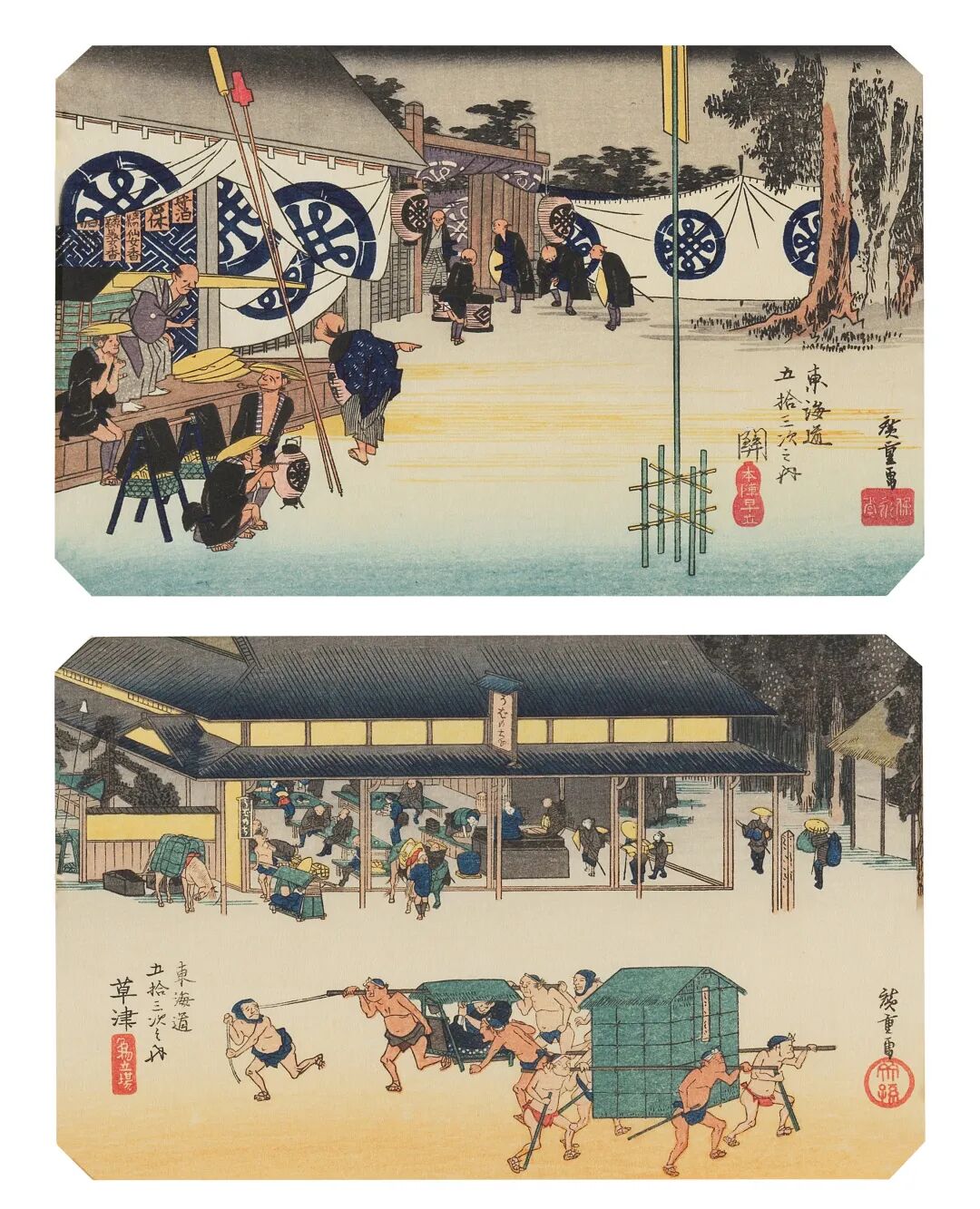 歌川广重 24-1草津 名物立场 24-2关 本阵早立