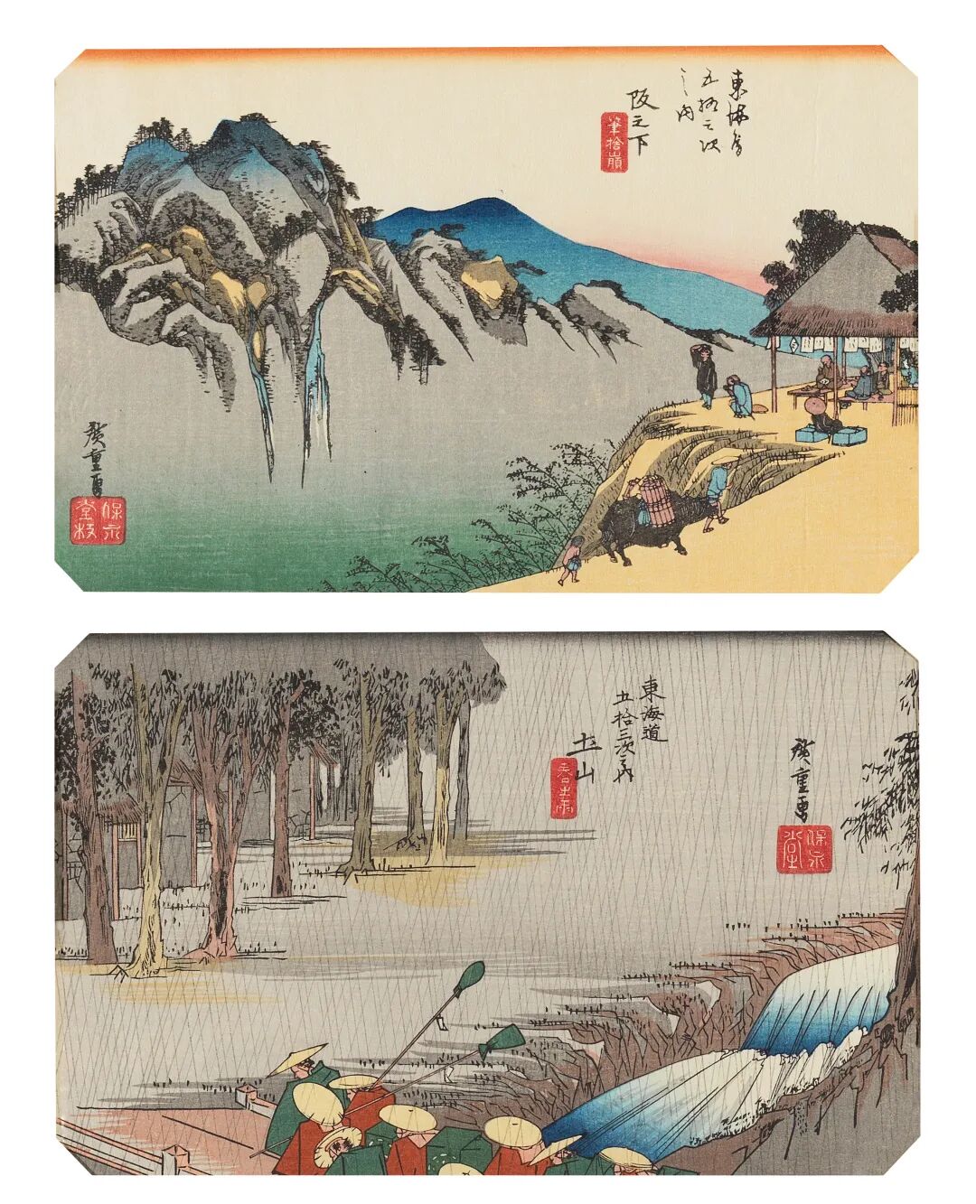 歌川广重 21-1阪下 笔舍岭 21-2土山 春之雨