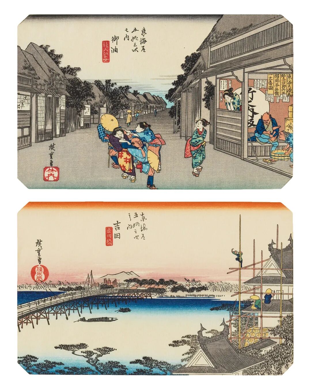 歌川广重 15-1吉田 丰川桥 15-2御油 旅人留女