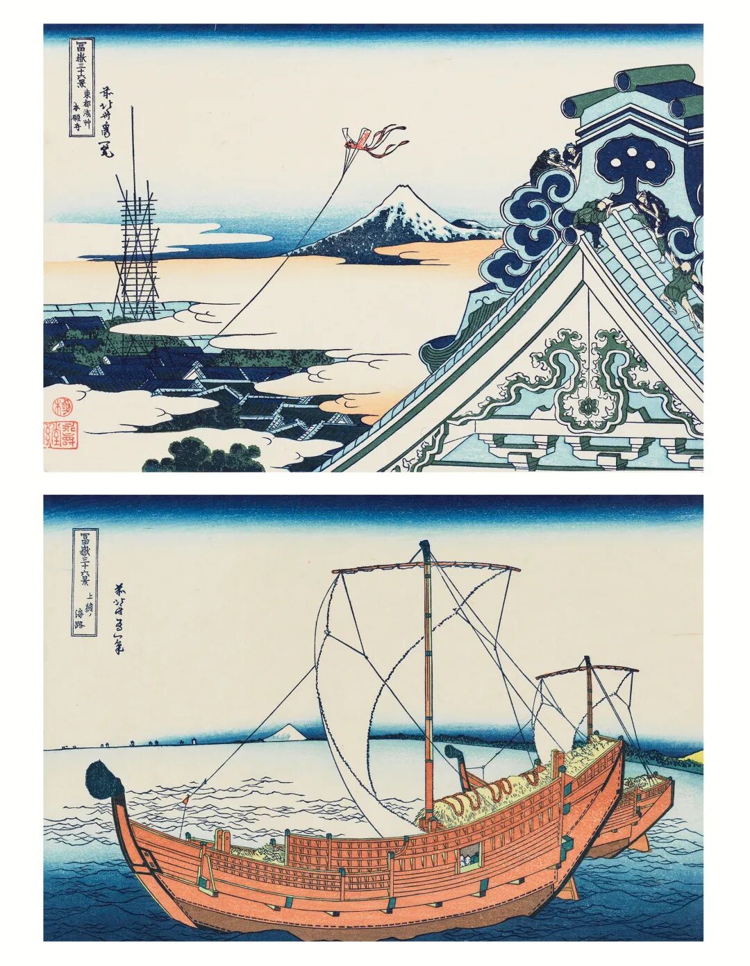 葛饰北斋 3-1上总之海路 3-2东都浅草本愿寺