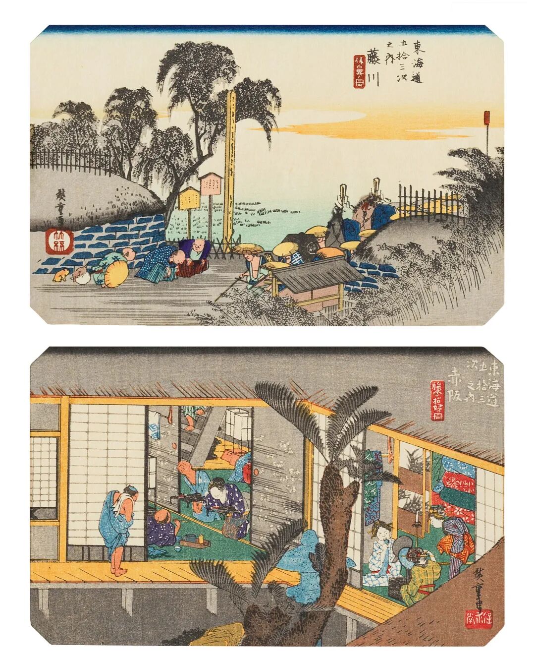 歌川广重 16-1赤阪 旅舍招妇之图 16-2藤川 棒鼻之图