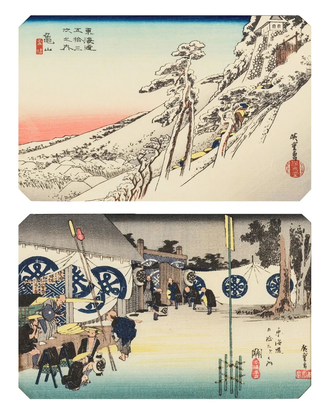 歌川广重 20-1龟山 雪晴 20-2关 本阵早立