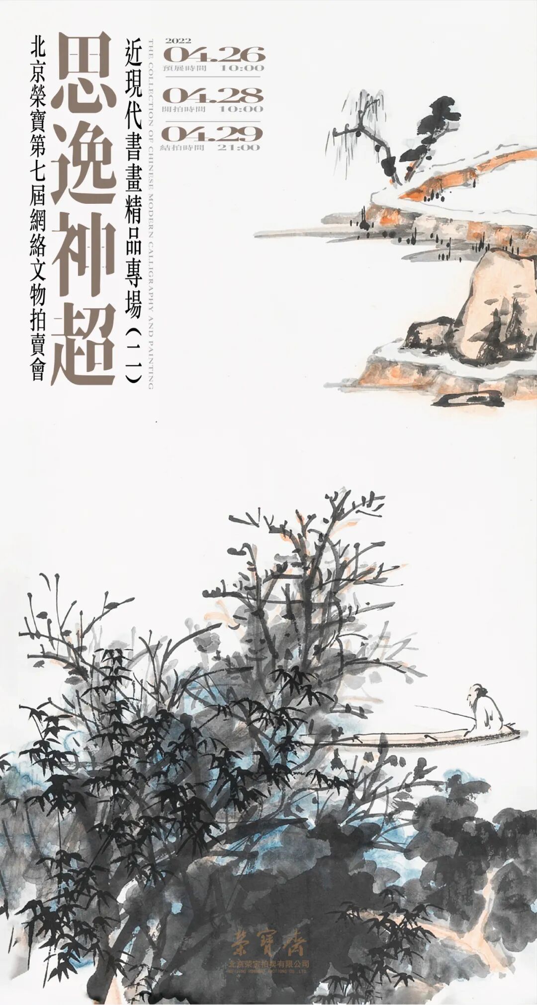 北京荣宝第七届网络文物拍卖会——思逸神超·近现代书画精品专场(二)将于4月26日10:00-4月28日10:00开启线上预展,并于4月28日10:00开拍,4月29日21:00结拍。