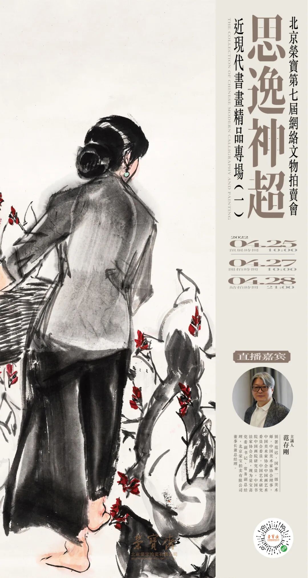 荣宝斋党委副书记、常务副总经理、北京荣宝拍卖董事长兼总经理范存刚将于4月28日20:30为本场拍卖进行直播讲解,为广大藏家带来专业的收藏鉴赏知识,期许与大家的互动交流。