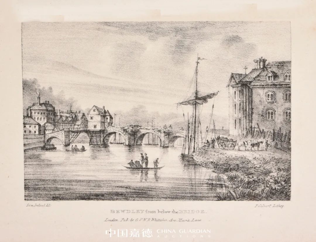 蚀刻版画之外,铜版画以及钢版画亦为西方传统版画最为重要的组成部分。《英国风景版画集》内收英国风景版画40余幅,笔触细腻,刻工精湛。皮质书脊,品相极佳。