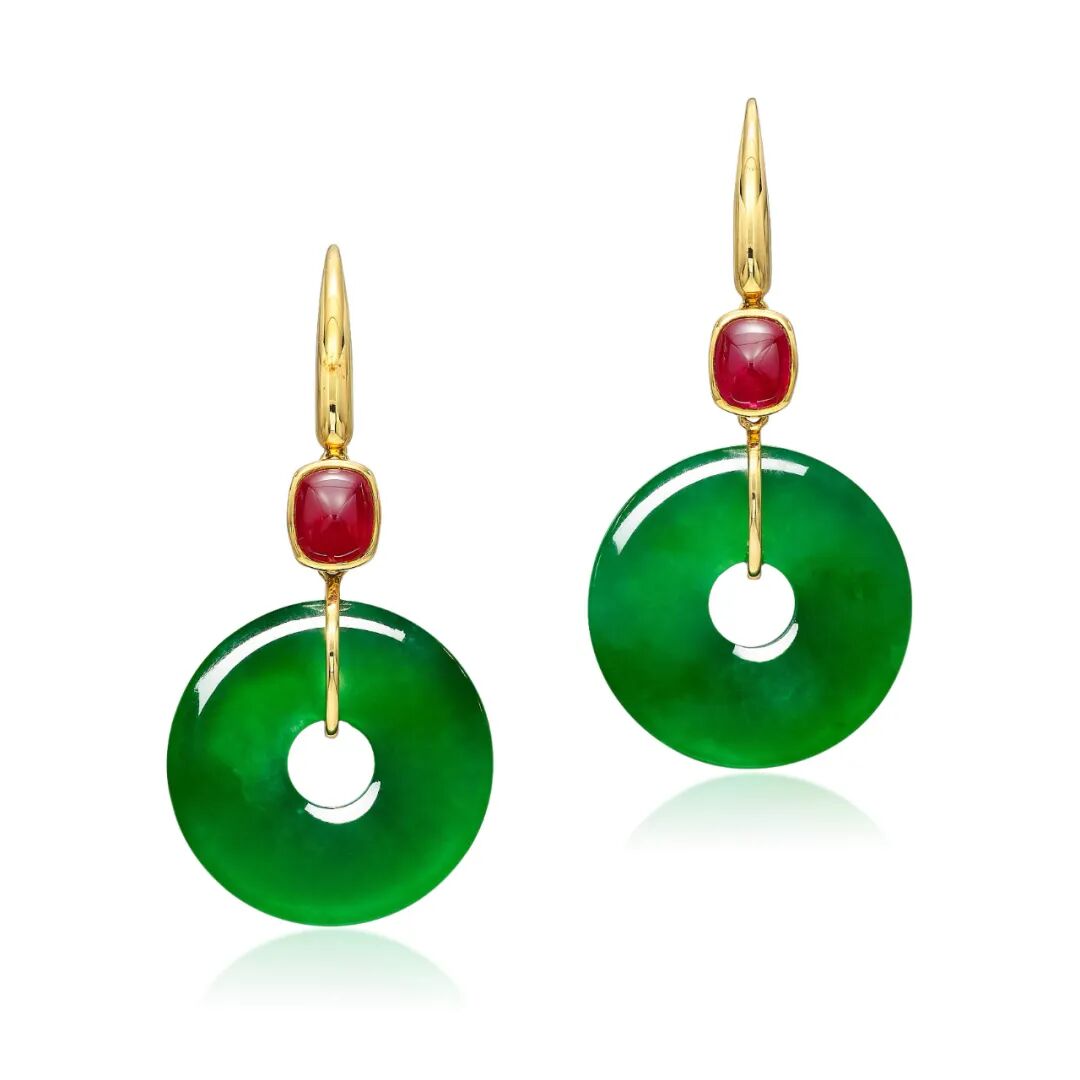 天然翡翠环 配 红宝石 耳坠一对