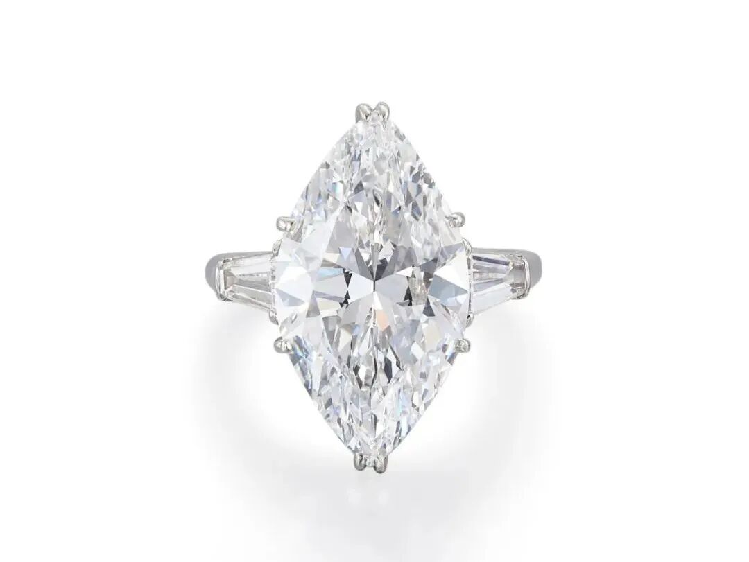 8.33克拉橄榄尖形D色内部无瑕钻石戒指