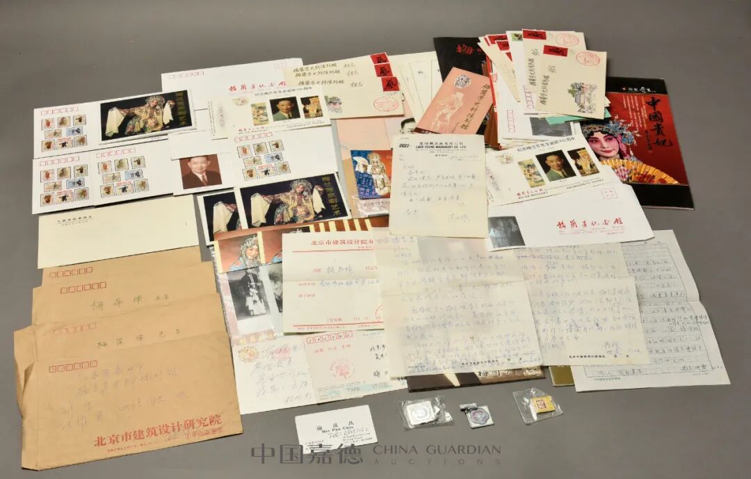 3、关于梅兰芳的纪念物品一组,包含梅葆琛致江苏泰州梅兰芳史料陈列馆剧照3张附1封,梅葆琛、梅绍武、梅葆月、梅葆玖签名梅兰芳舞台艺术明信片4张,梅兰芳诞生九十周年纪念活动日程1页附1封,梅兰芳诞生九十周年纪念演出节目单3份,纪念梅兰芳先生诞辰一百周年座谈会请柬1张,梅兰芳舞台艺术、纪念梅兰芳先生诞辰100周年明信片等空白明信片11张,梅兰芳先生诞生100周年纪念封1枚、明信片1张,中国电信发行《梅兰芳诞辰100周年纪念》电话磁卡1套5枚,江苏省邮电管理局发行纪念梅兰芳诞辰一百周年各种面值纪念卡20张,纪念梅兰芳先生诞辰一百周年的梅兰芳纪念馆门票28张,梅兰芳纪念馆、梅兰芳史料陈列馆等空信封28封,梅兰芳纪念馆门票11张附1封,梅兰芳纪念馆空信封1封,《梅兰芳舞台艺术》邮票小型张之一的未发行图稿精印4份,《梅兰芳京剧艺术》特种邮资明信片8张(均钤盖"梅兰芳纪念馆留念印",其中1张有梅葆琛、梅绍武、梅葆月、梅葆玖签名),梅兰芳史料陈列馆简介6份,梅兰芳纪念馆简介6份,梅派经典剧目展演周节目单1份,《中国贵妃》简介1册,梅派大型古典名剧《太真外传》简介1张。