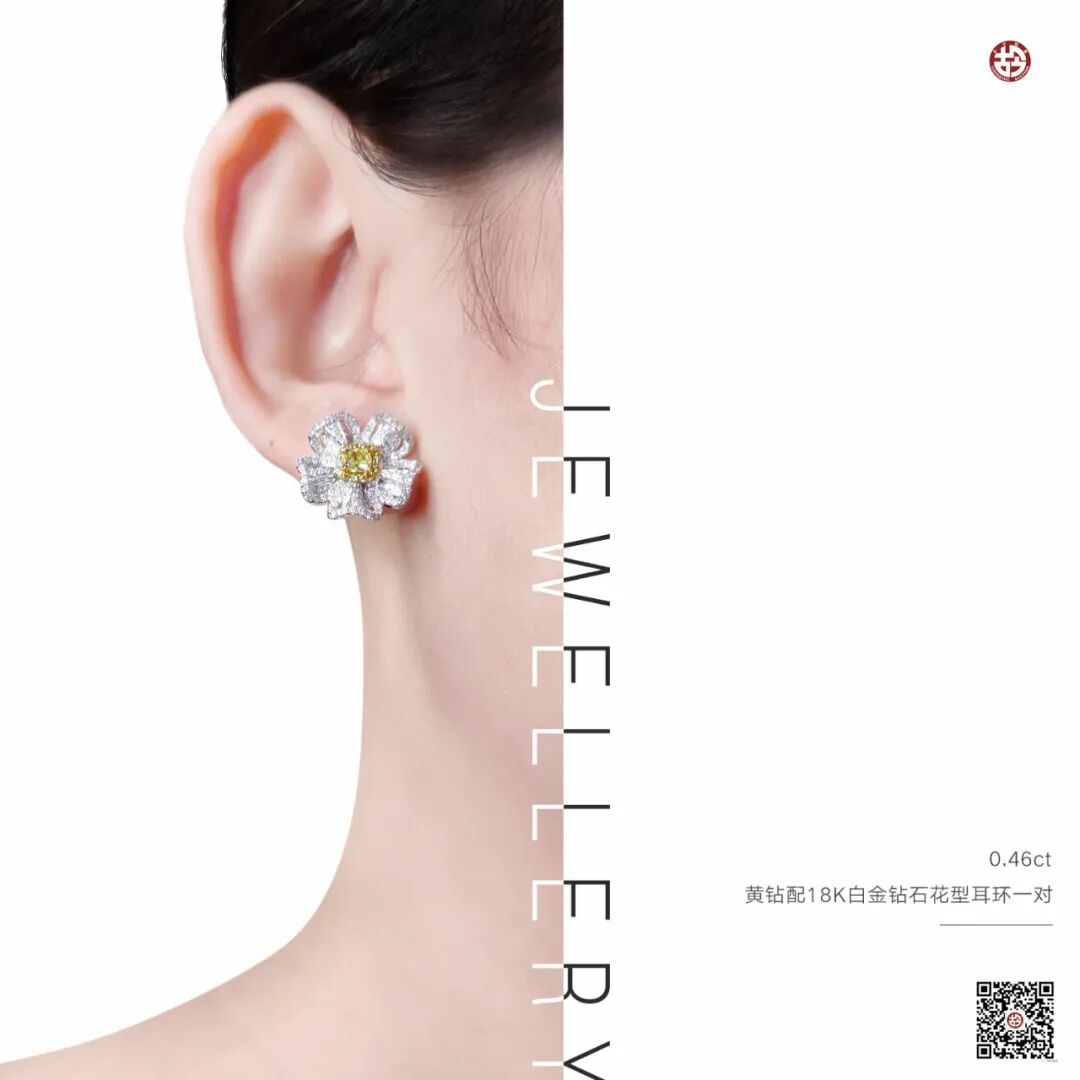 0.46克拉黄钻配18K白金钻石花型耳环一对