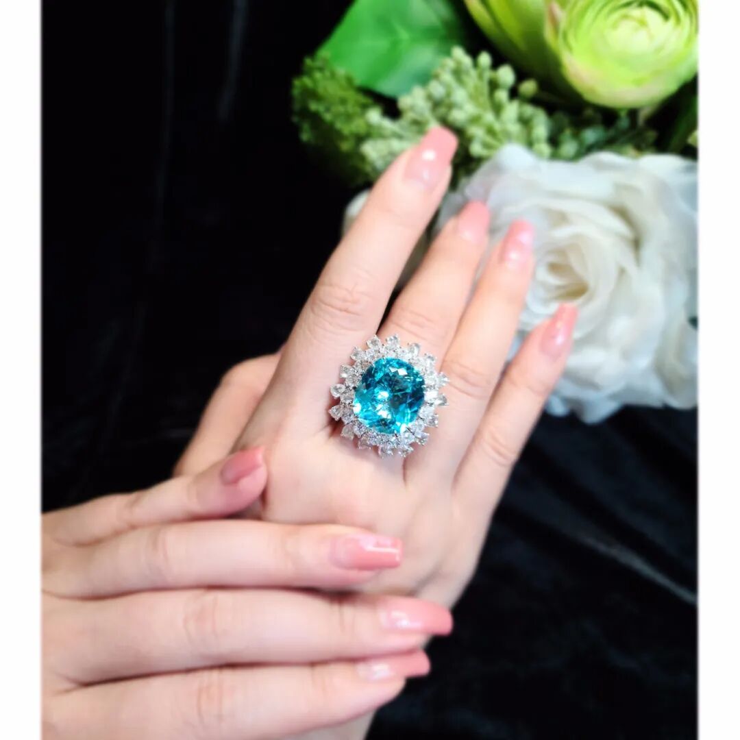 16.72克拉帕拉伊巴配18K白金钻石戒指