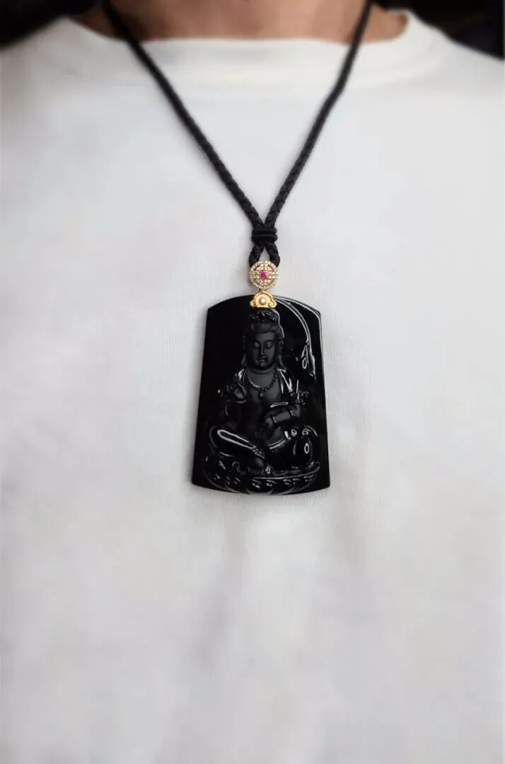 缅甸天然墨翠配18K金钻石及红宝石观音挂件