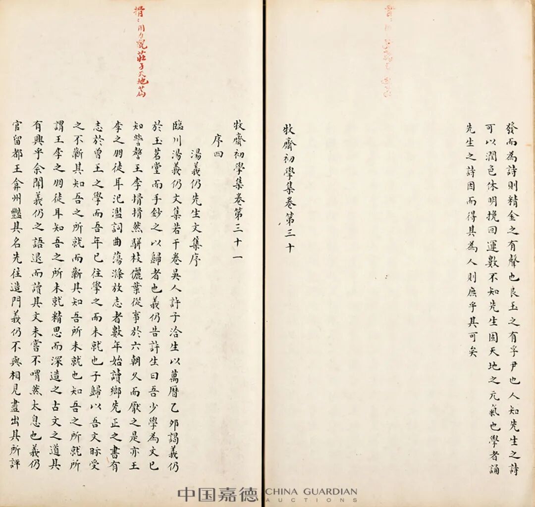 此外,钱谦益所著《牧斋初学集》乾隆时遭禁毁,颇有可观。此书系钱谦益入清以前诗文结集,全本应为钱谦益诗二十卷、文八十卷、《太祖实录辨正》五卷、《读杜小笺》三卷,《读杜笺》二卷,有明崇祯十六年(1643)瞿式耜刻本为其首刻。该书清乾隆时遭禁,流传绝少,但因钱氏盛名,仍于清人文集中极富盛名,因而为近世藏书家所宝。曾观文旧藏。全应一百一十卷,存卷二十一至八十七。