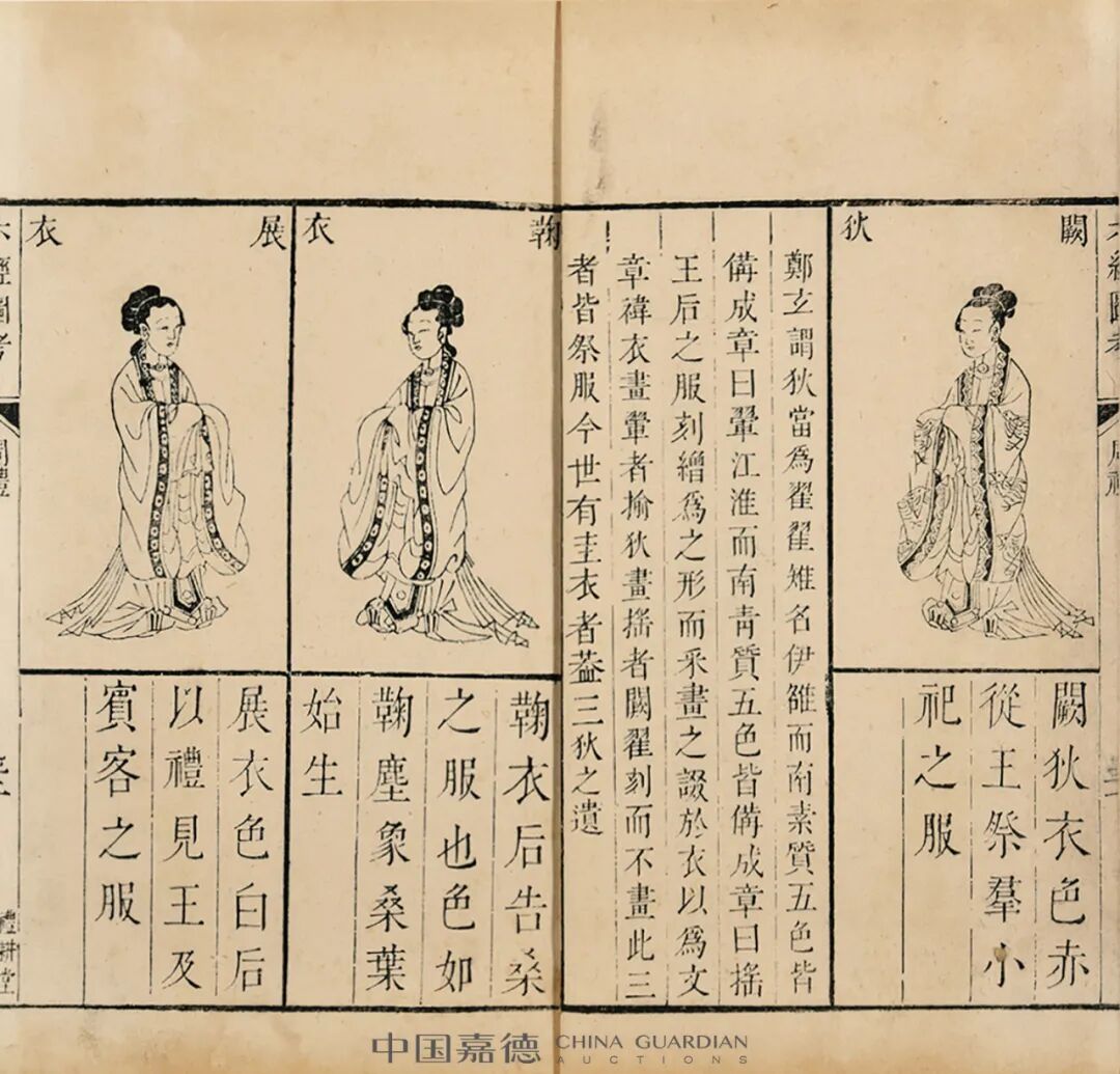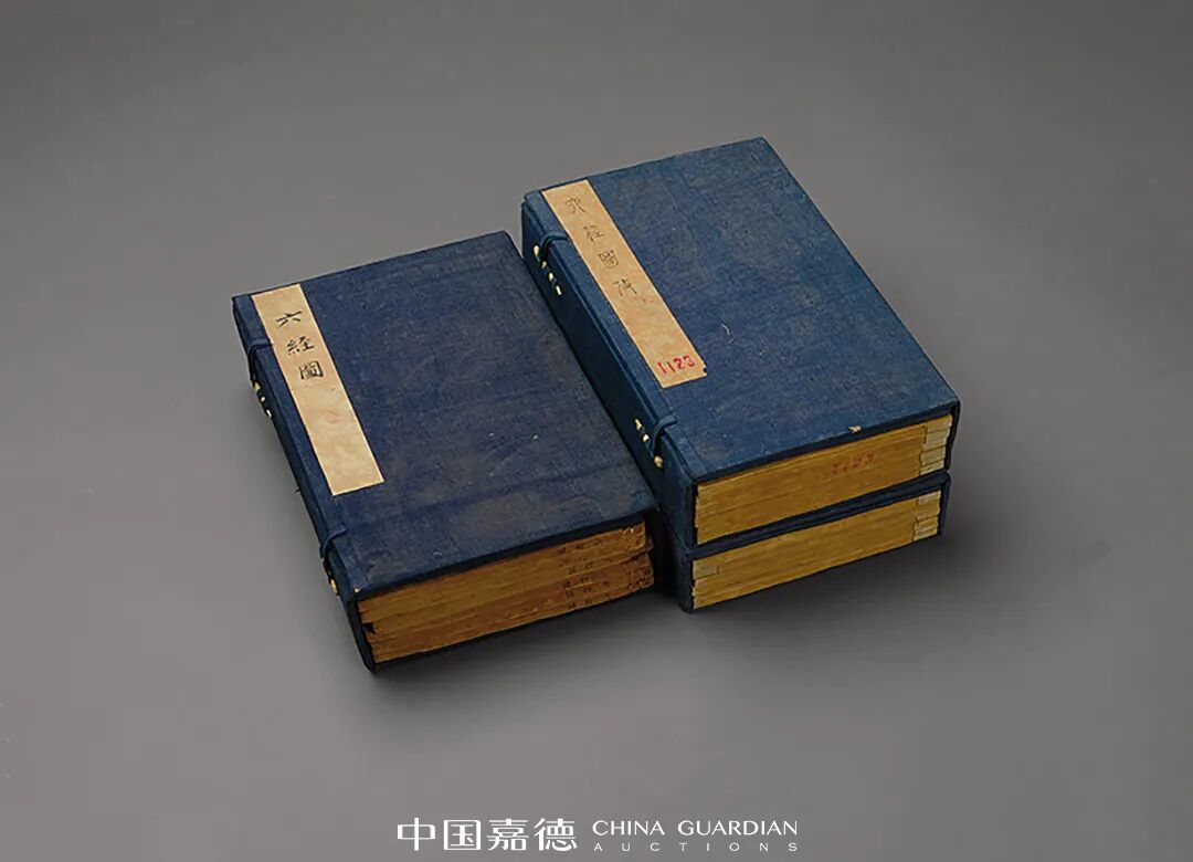 四书之外,六经亦为读书之门径。六经指《诗》、《书》、《礼》、《易》、《乐》、《春秋》,始见于《庄子·天运篇》,系经过孔子整理而传授的六部先秦古籍,这六部经典著作的全名依次为《诗经》、《书经》(即《尚书》)、《仪礼》、《易经》(即《周易》)、《乐经》、《春秋》。此次所得清乾隆八年(1743)述堂刻本《六经图》十二卷,计1函6册,又清康熙间礼耕堂刻本《六经图考》不分卷,计2函12册。版图甚多,绘刻精美。
