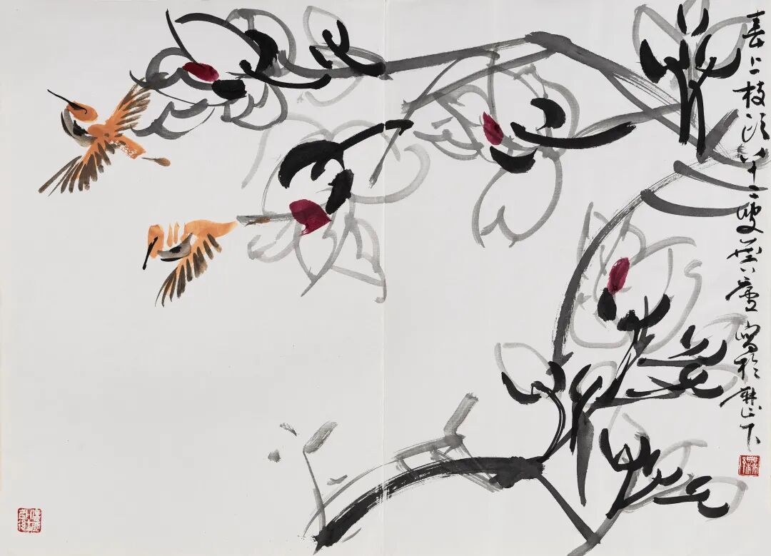 许麟庐 玉兰小鸟