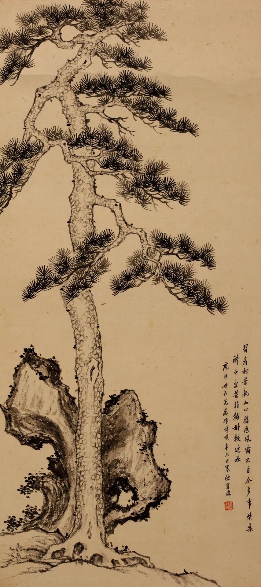 题识:习看柯叶孰知心?绵历风霜不自今。多事柴桑醉中叟,苦将独树较连林。虎臣世仁兄属作博咲,辛未大寒陈宝琛。