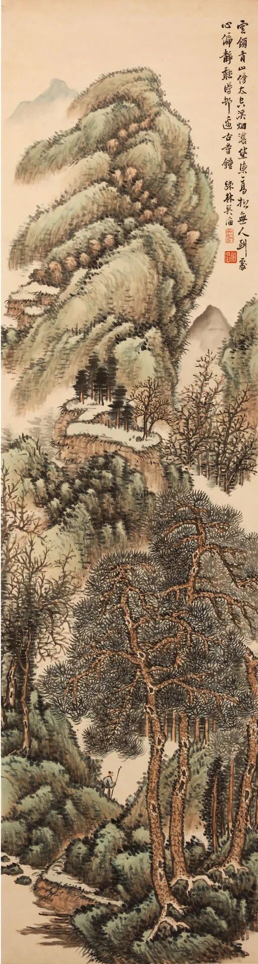 题识:云锁青山傍太空,溪烟浓黛染高松。无人到处心偏静,听得邨边古寺钟。疏林吴滔。