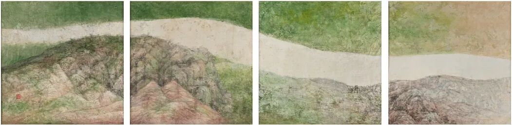 “缀”拼贴与手工制纸本裱于画布,镜框四屏