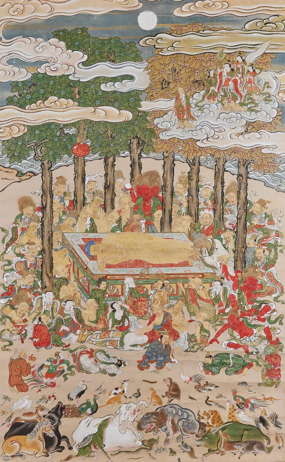 日本 江户中期 1727年 佛陀涅槃图立轴