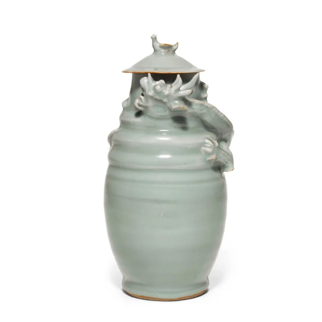 拍品估价:100,000 - 150,000 英镑Lot 38 南宋 龙泉窑青釉塑龙纹盖罐