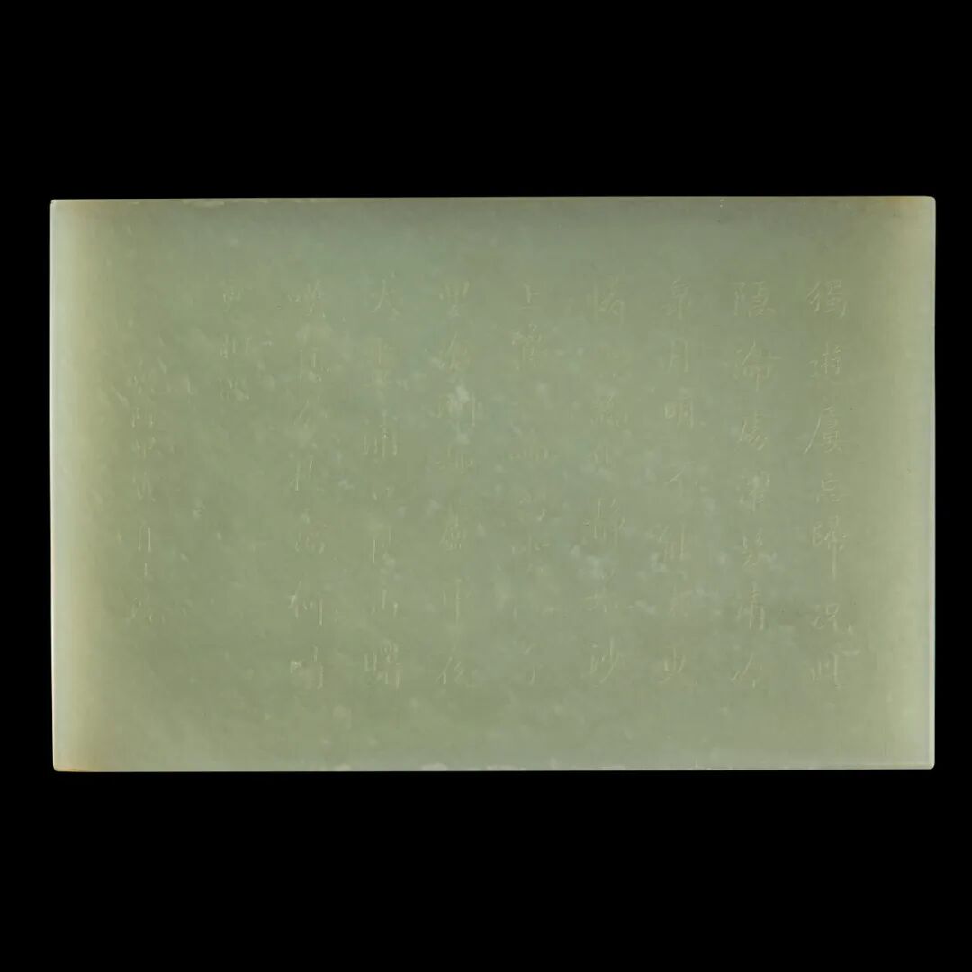Lot 135 清乾隆 乾隆甲寅三月上浣款 白玉雕山水渔舟图 及 阴刻《蓝田溪与渔者宿》诗文玉片