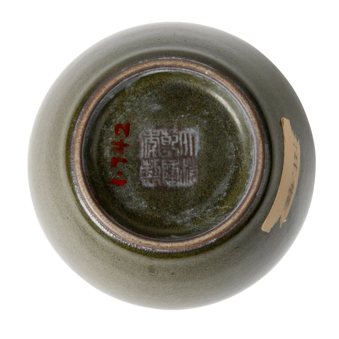 来源:前英格兰私人收藏,于90年代期间藏于香港;底书朱文‘1.742’注:茶叶末釉橄榄瓶极为罕见。可比较的藏品曾透过芝加哥艺术协会在1970年展出于《詹姆斯及玛丽莲·阿尔斯多夫收藏中国艺术》,藏品c73,后售于香港佳士得,1993年3月23日,拍品741;另一件相似橄榄瓶,售于伦敦苏富比,1990年6月12日,拍品283;另有一件着录于《张宗宪藏重要中国瓷器—云海阁》,1993年6月2-14日展出于伦敦佳士得,后售于纽约佳士得,2022年5月25日,拍品1049。