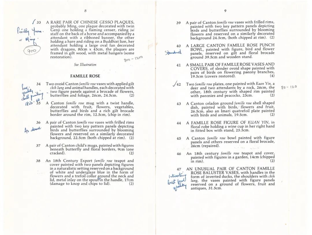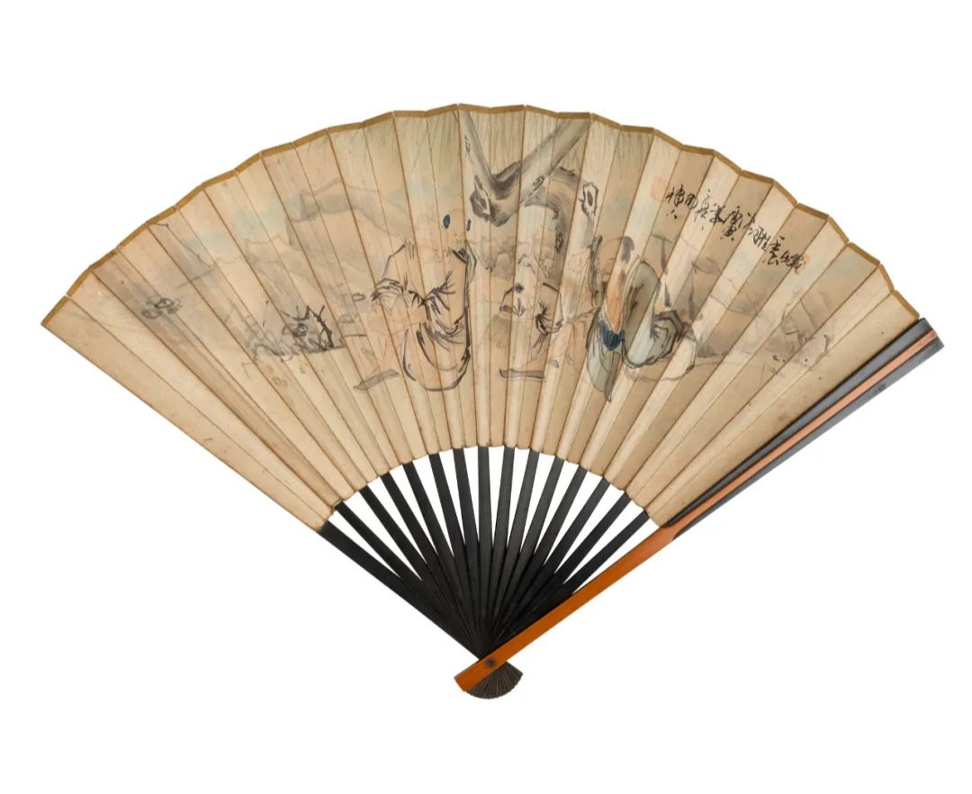 *拍品90至103号,各色外销通草纸画及折扇均出于此