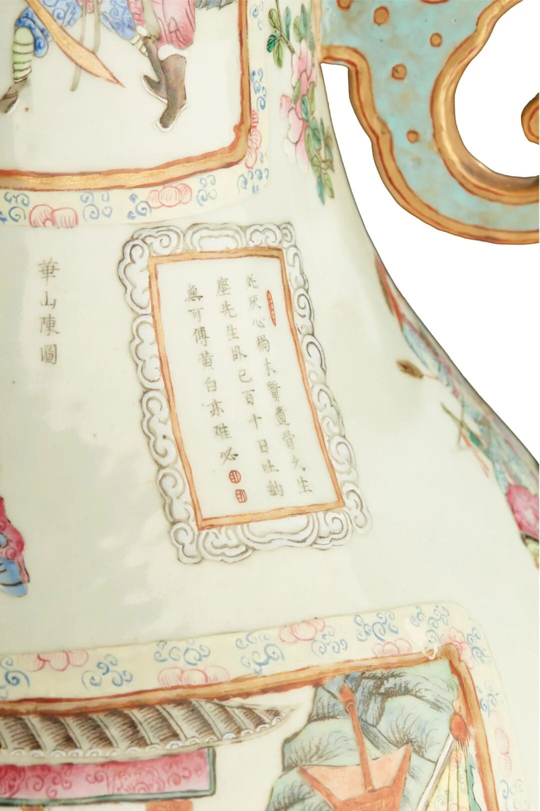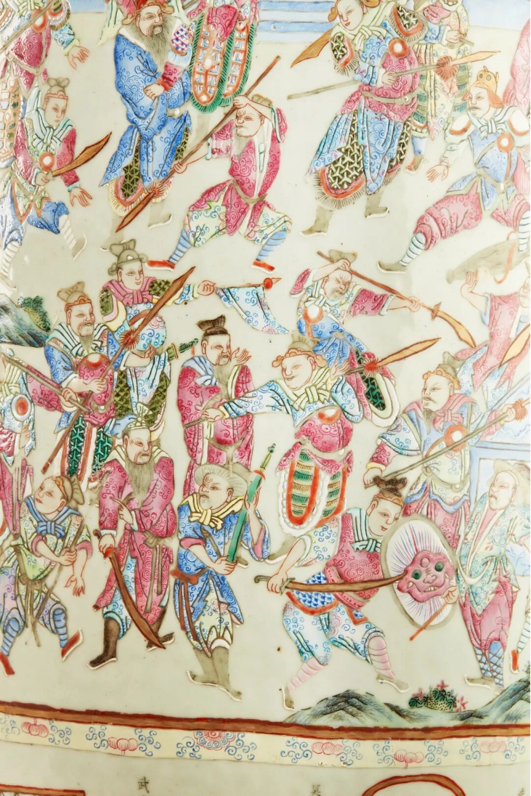 Lot 253 清 粉彩无双谱纹落地大瓶 带木座(一对)