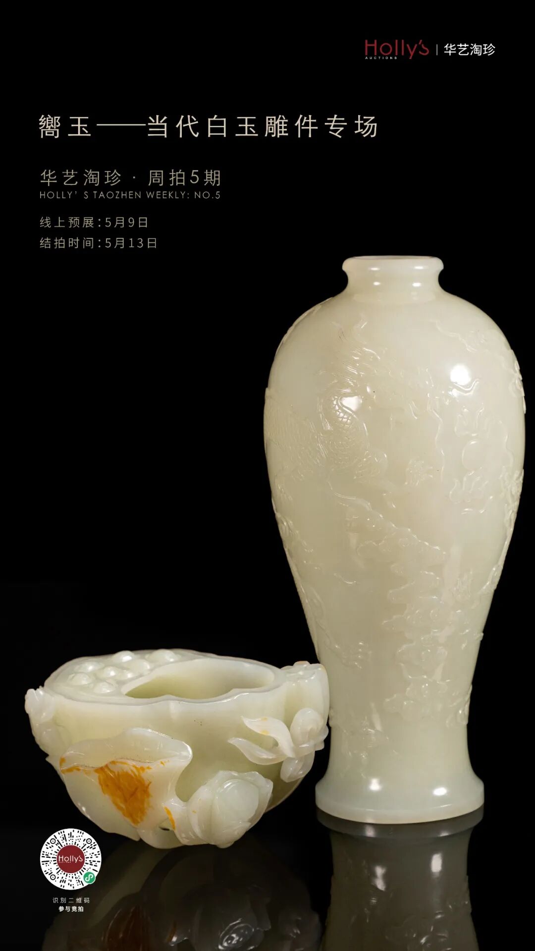 除此件拍品外,华艺淘珍正推出《私家珍藏四》直播拍专场及《嚮玉——当代白玉雕件》延时拍专场,将于本周三(5.11)、周五(5.13)晚上结拍,专家老师精彩讲解,诚邀广大藏友通过华艺在线APP、华艺淘珍小程序提前关注,准时参与竞投,亦可点击下方海报直接进入专场,切勿错过!