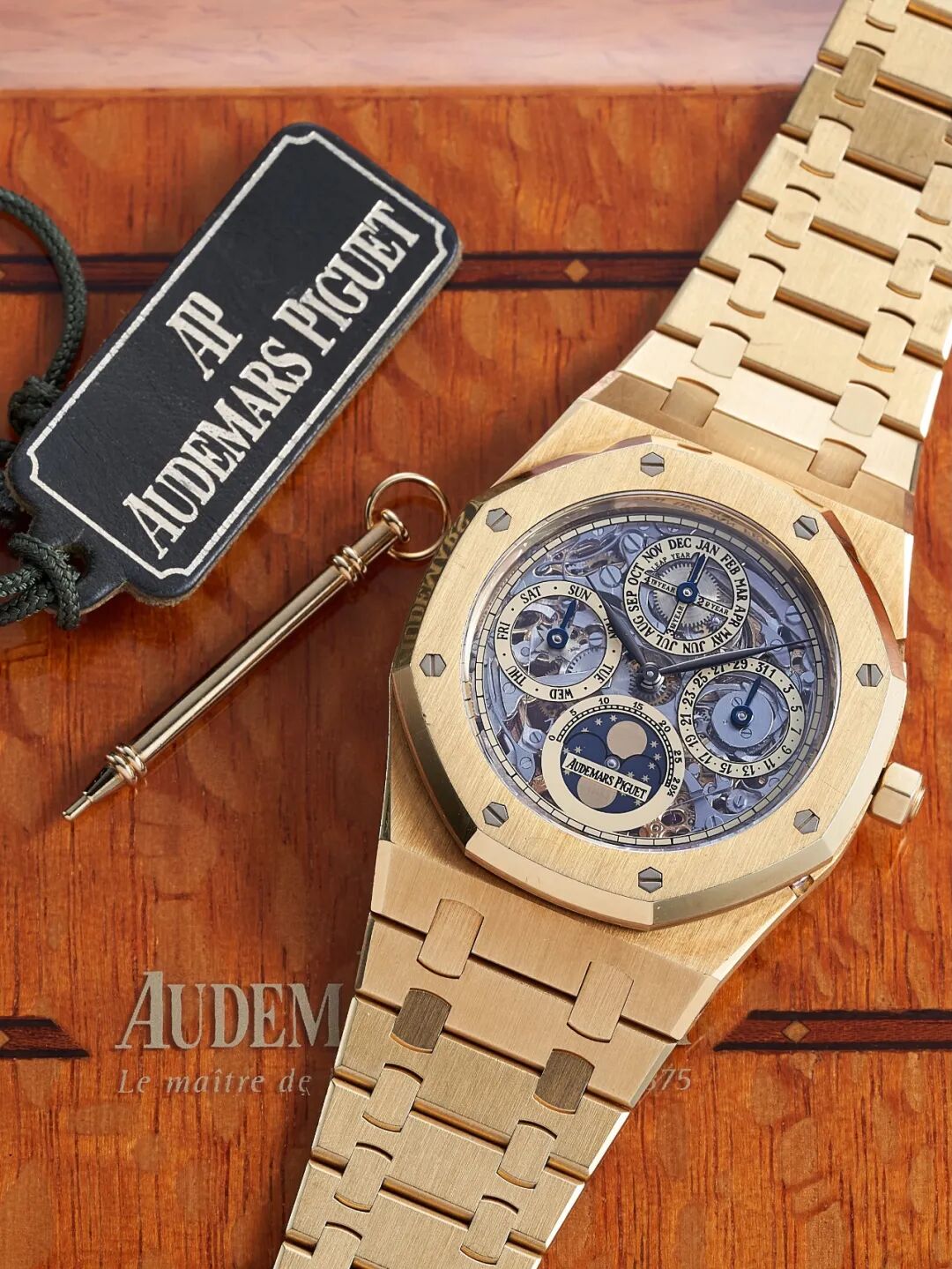 罕有黄金自动上弦镂空万年历链带腕表