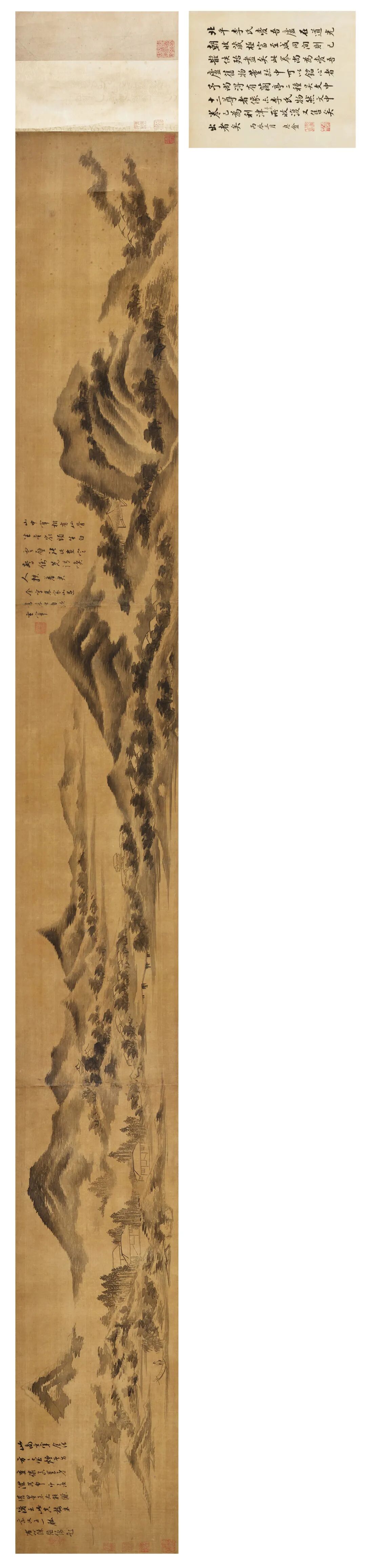 仇英(约1494-1552),字实父,号十洲。据明张潮《虞初新志》,仇英出身低微,“初为漆工,兼为人彩绘栋宇”,或因文学功底薄弱,鲜见其于画上题诗。约一五一七年,二十出头的仇英结识文征明,又跟随周臣习画。中年后,画名渐盛,交游圈子愈加广泛,尤与文征明父子、文氏门生投契,故流传作品中,文嘉、彭年、陆师道等吴门子弟常为其题识赋诗。仇英传世作品包括现藏台北故宫名件《仙山楼阁图》、上海博物馆藏《沙汀鸳鸯图》 以及《摹倪瓒肖像图》等。边文进