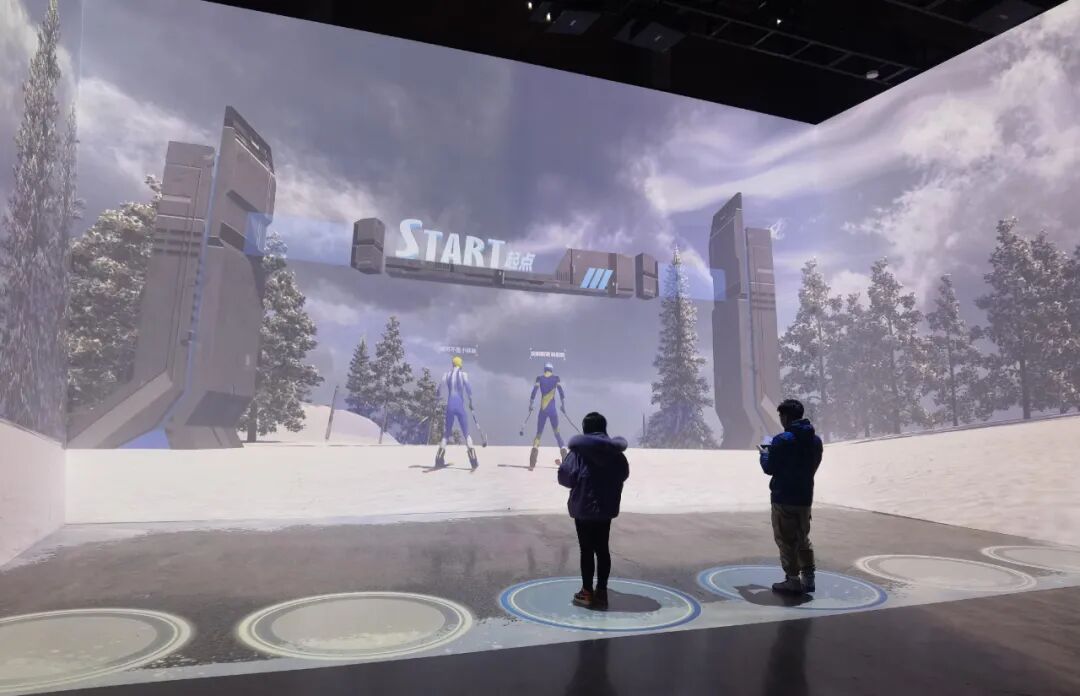 该展览打造了沉浸式互动体验的意象空间,观众可以在此处体验冬奥运动的乐趣。