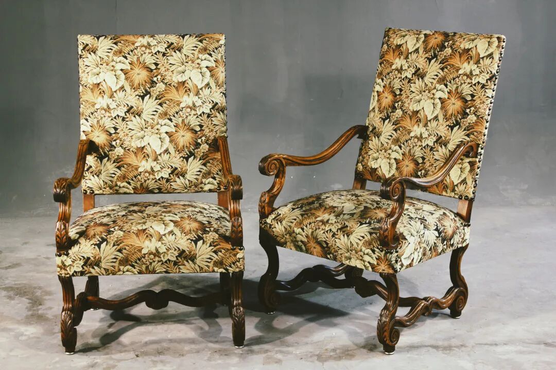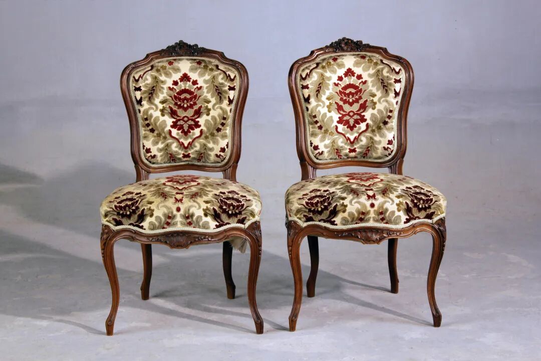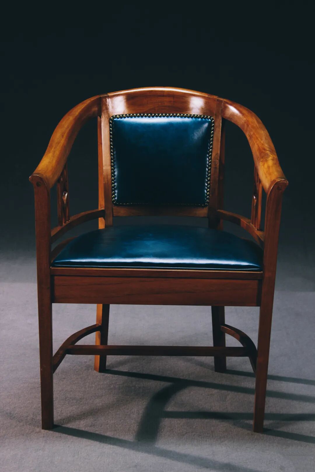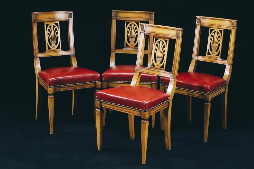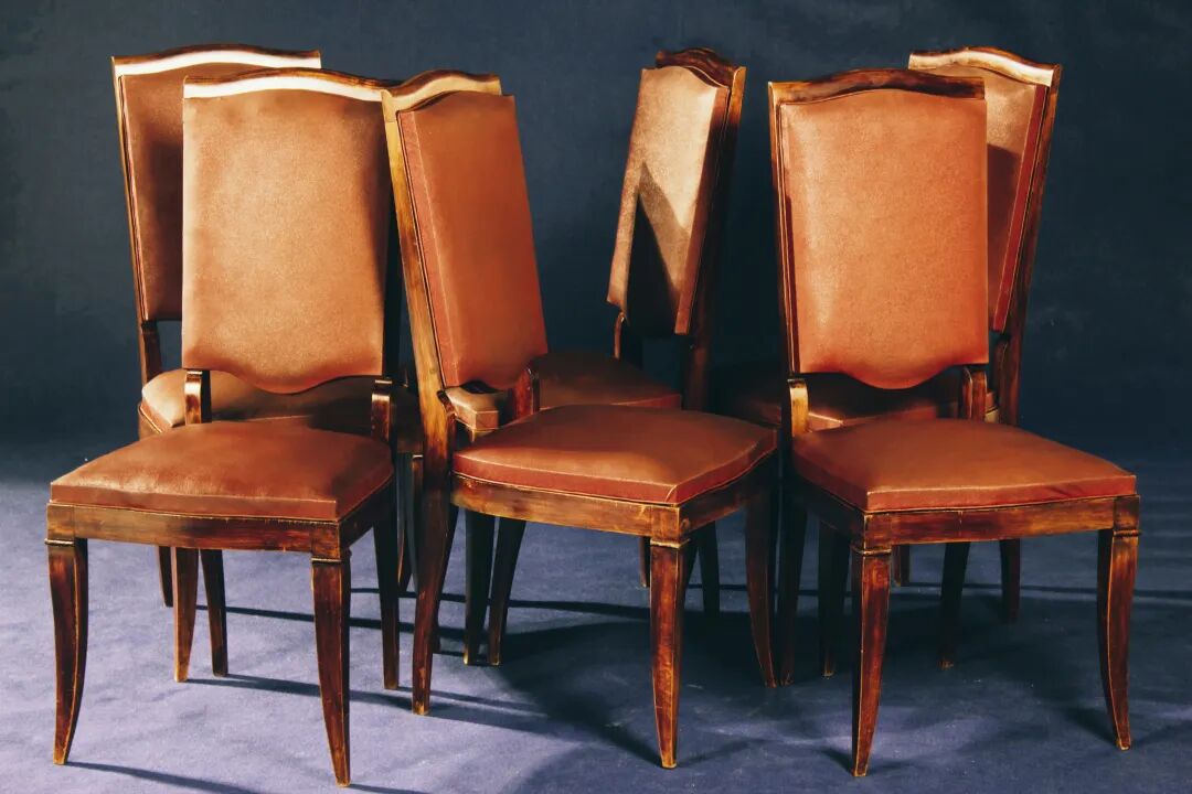 装饰艺术风格榉木红牛皮面靠背椅一套