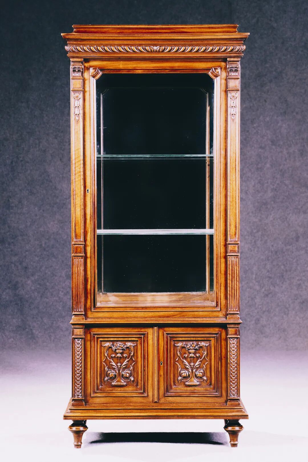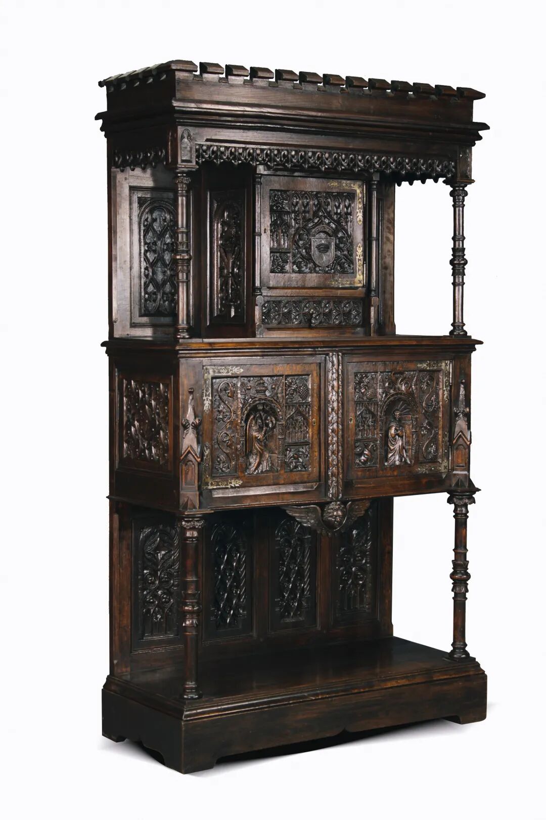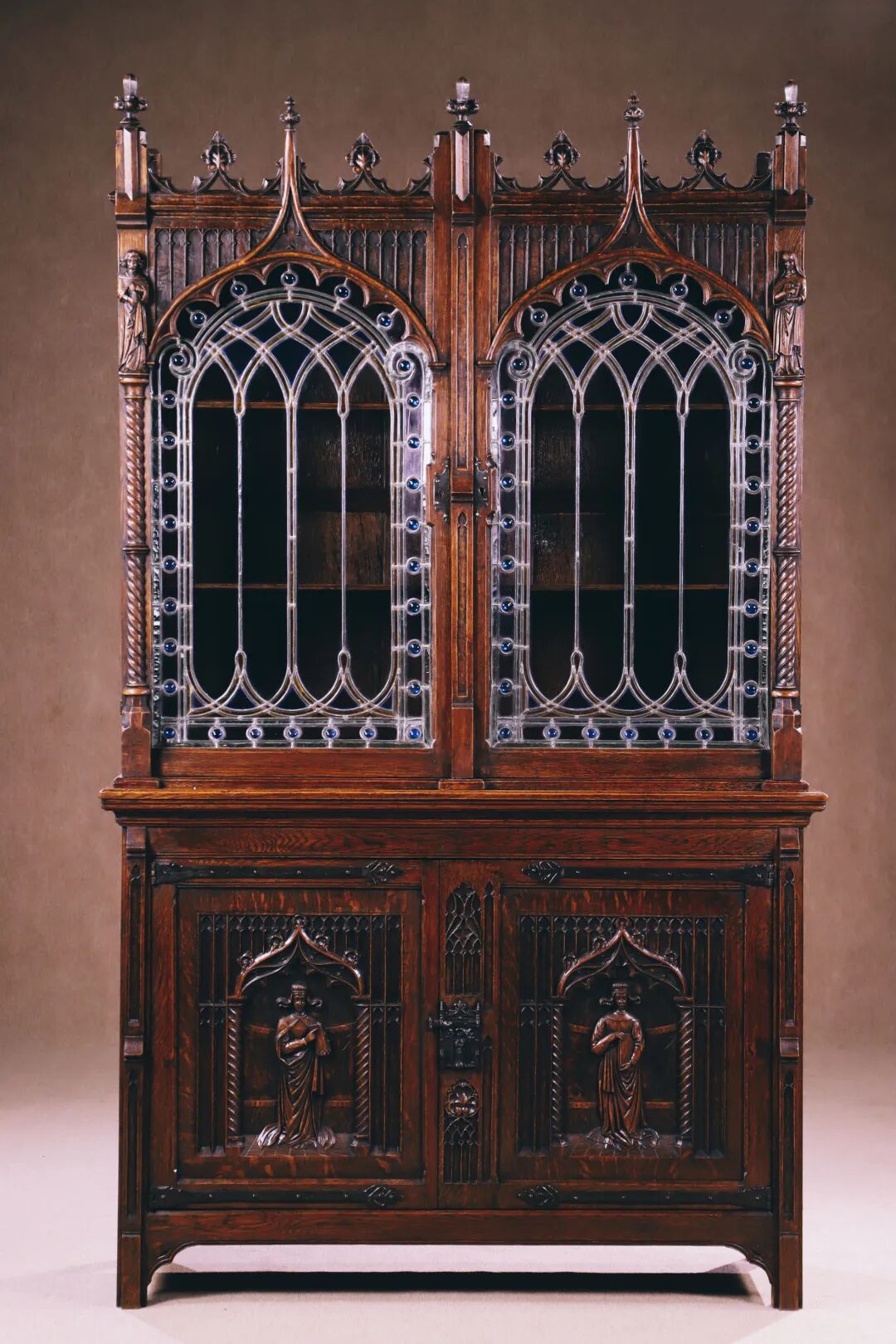 法国十九世纪哥特式铅条嵌彩玻璃立柜