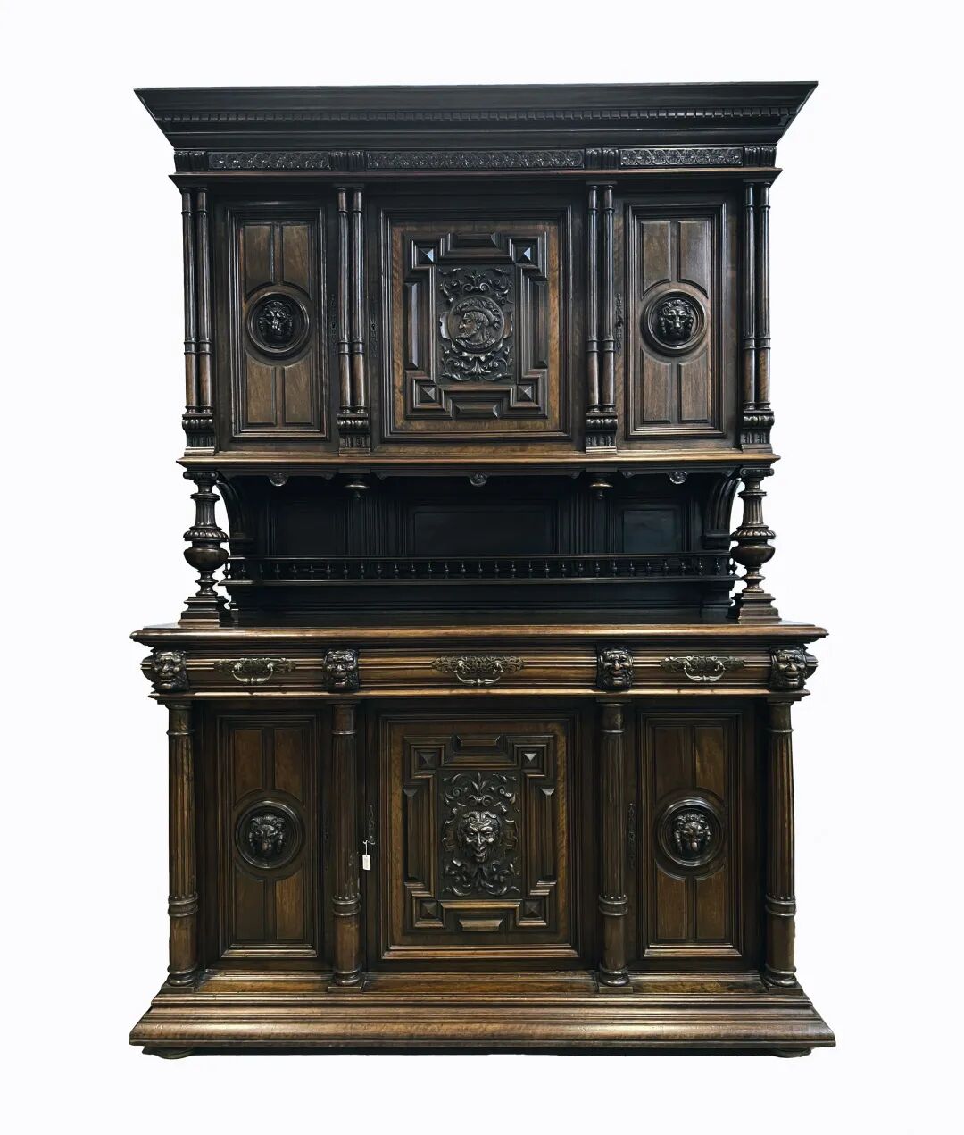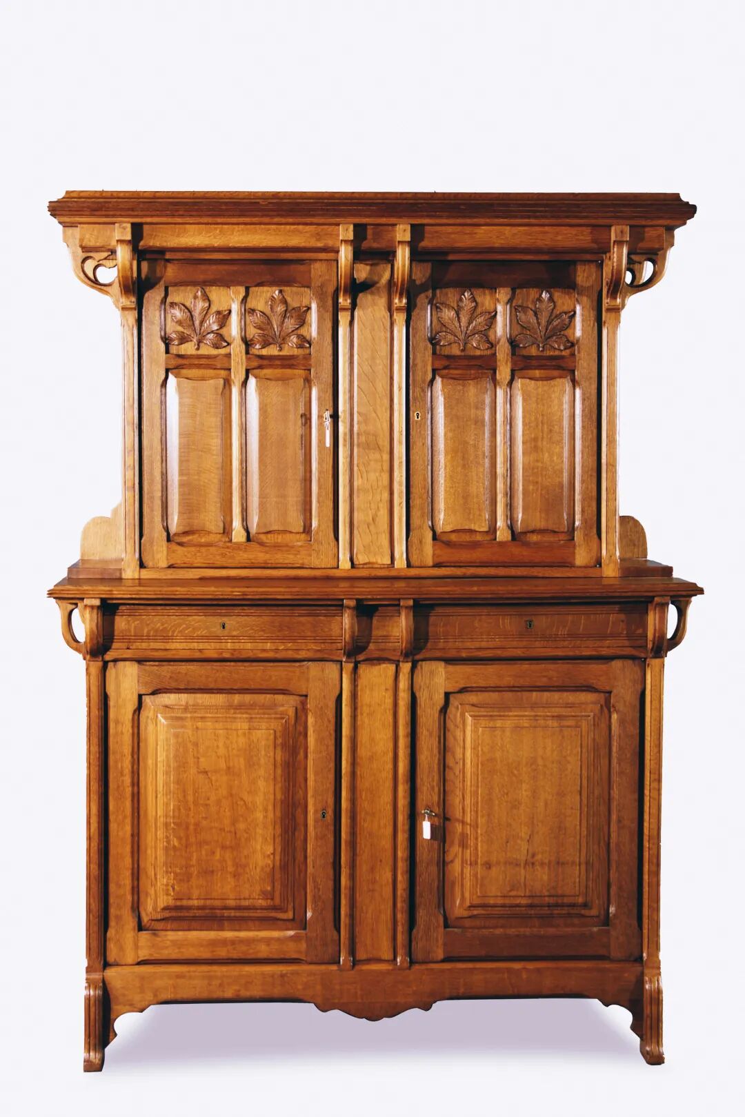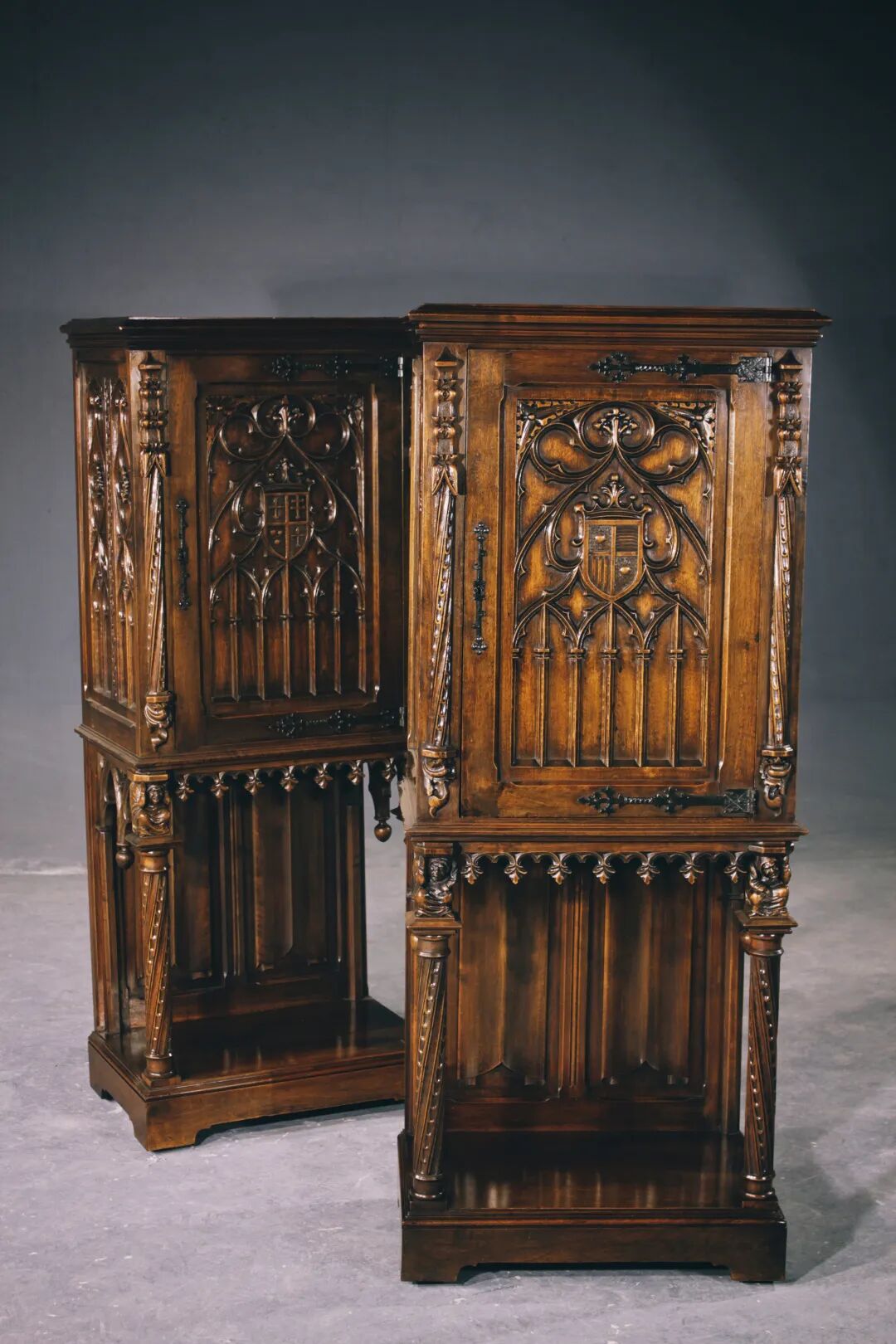 法国十九世纪哥特式铅条嵌彩玻璃立柜