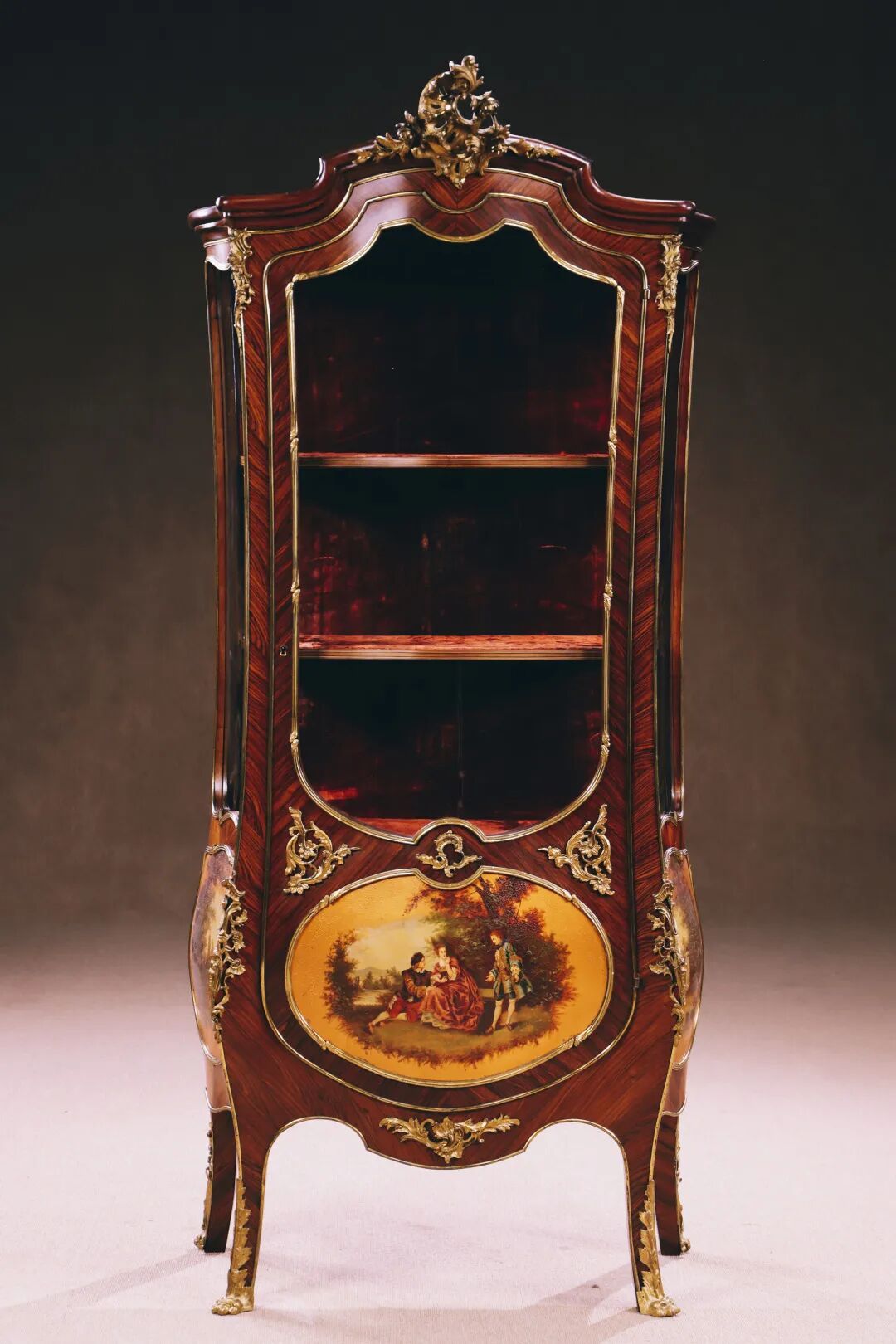 路易十五式马丹漆玫瑰木贴皮展示柜