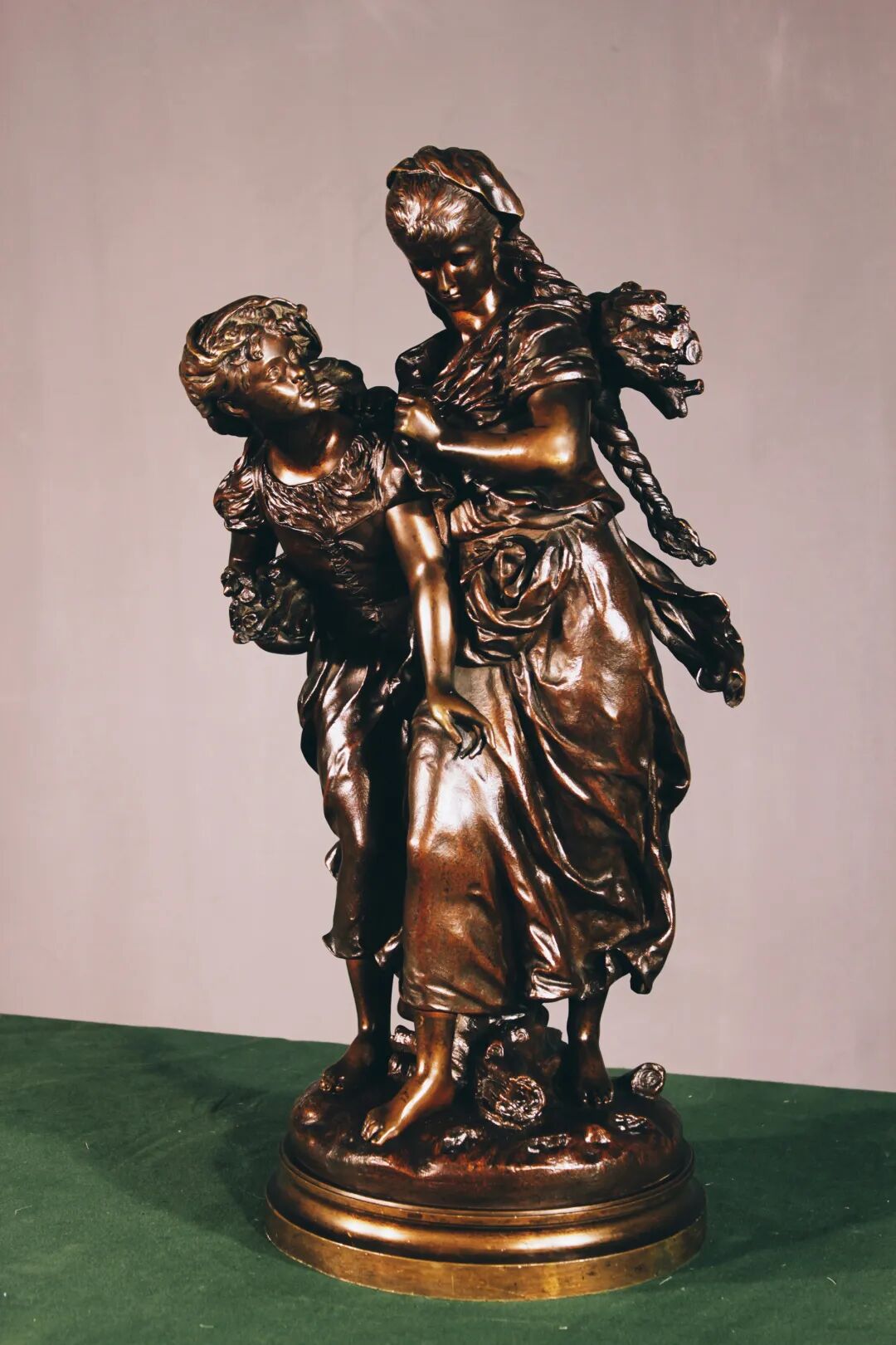 1882年“莫罗”款识铸铜雕塑《姐妹》