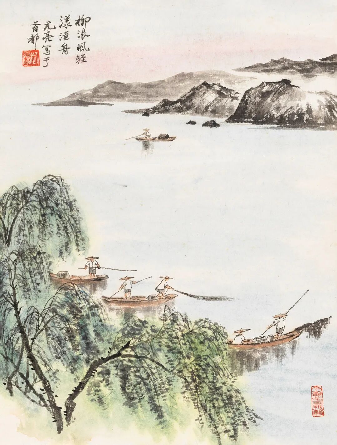 周元亮 柳浪风轻漾渔舟