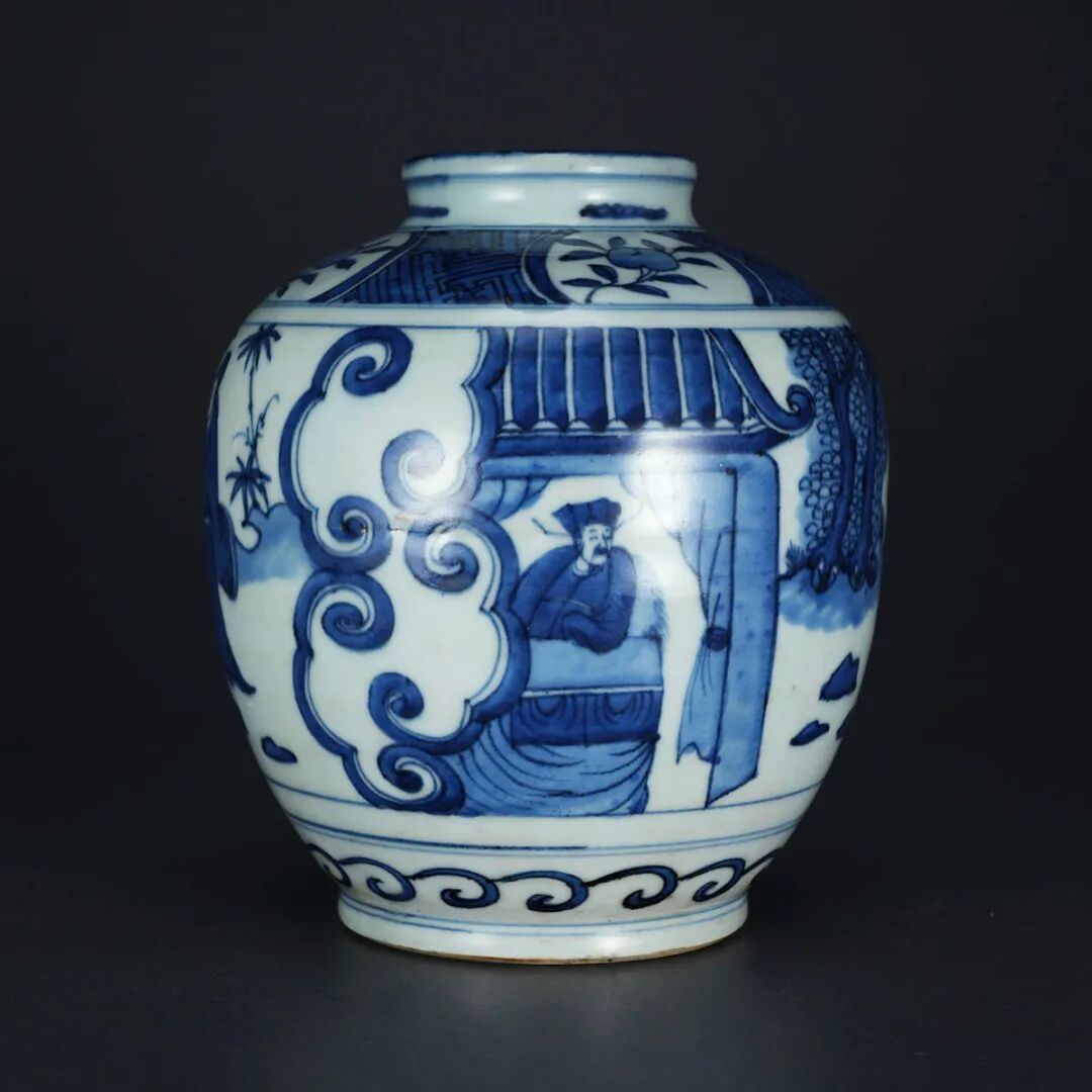 拍品因器形极似莲子而得名。腹部绘以人物故事片段。纹饰采用写实手法描画,生动自然。青花发色浓淡有致。整幅画面清新高洁,布局饱满,颇显绘瓷工匠手法的娴熟高超,富有高雅清旷的情趣。