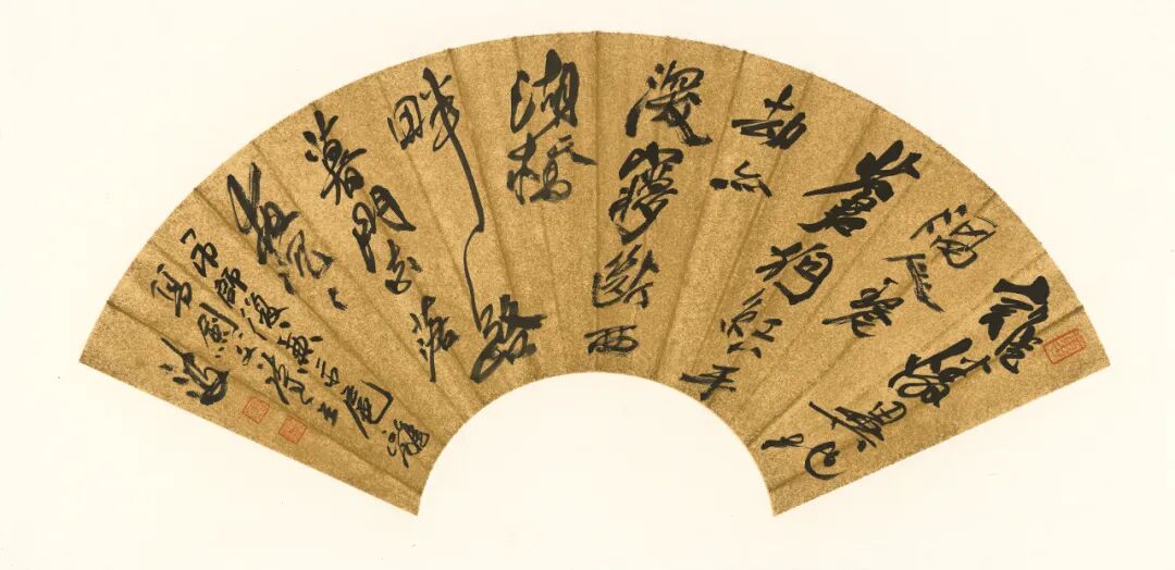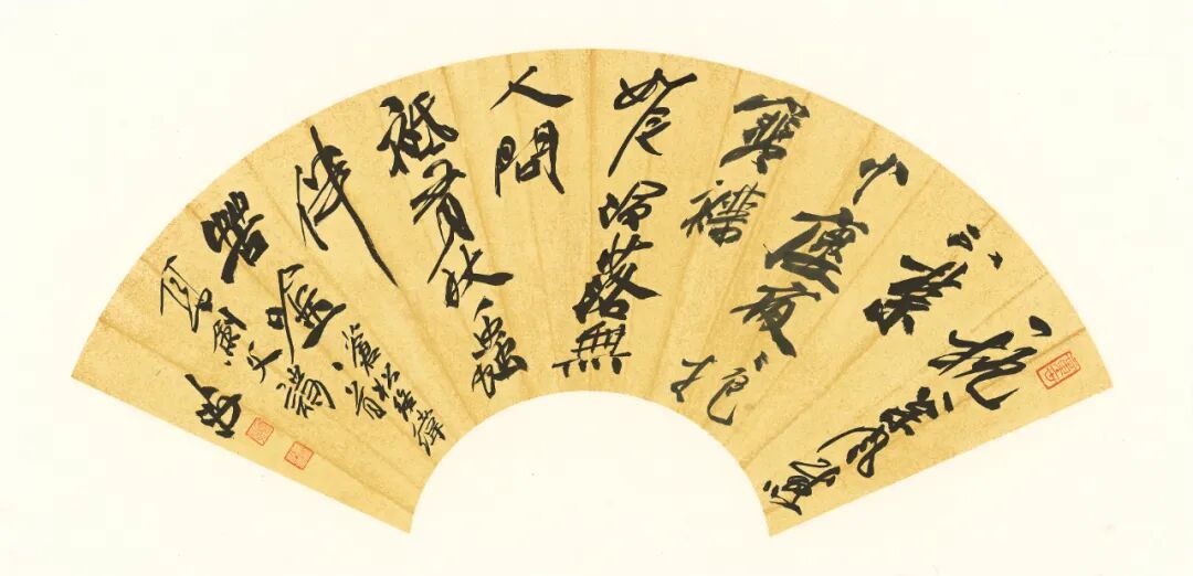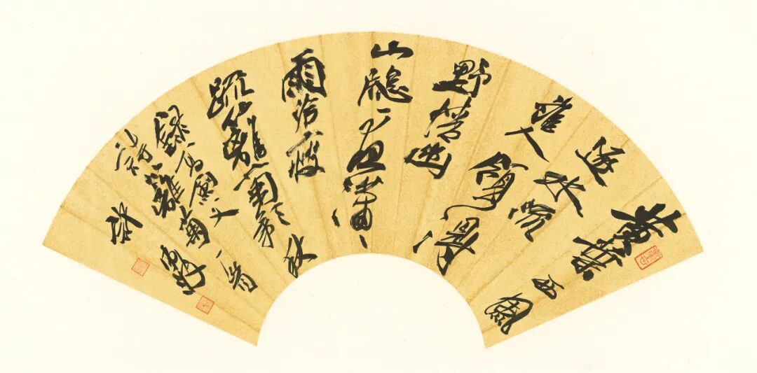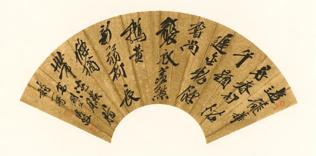 沛波的扇面融诗情书艺于一体,笔酣墨畅,雄劲遒健,以柔为刚,精气内涵,气韵生动,如古木苍藤,生机盎然;又如秋云在天,舒卷自如。