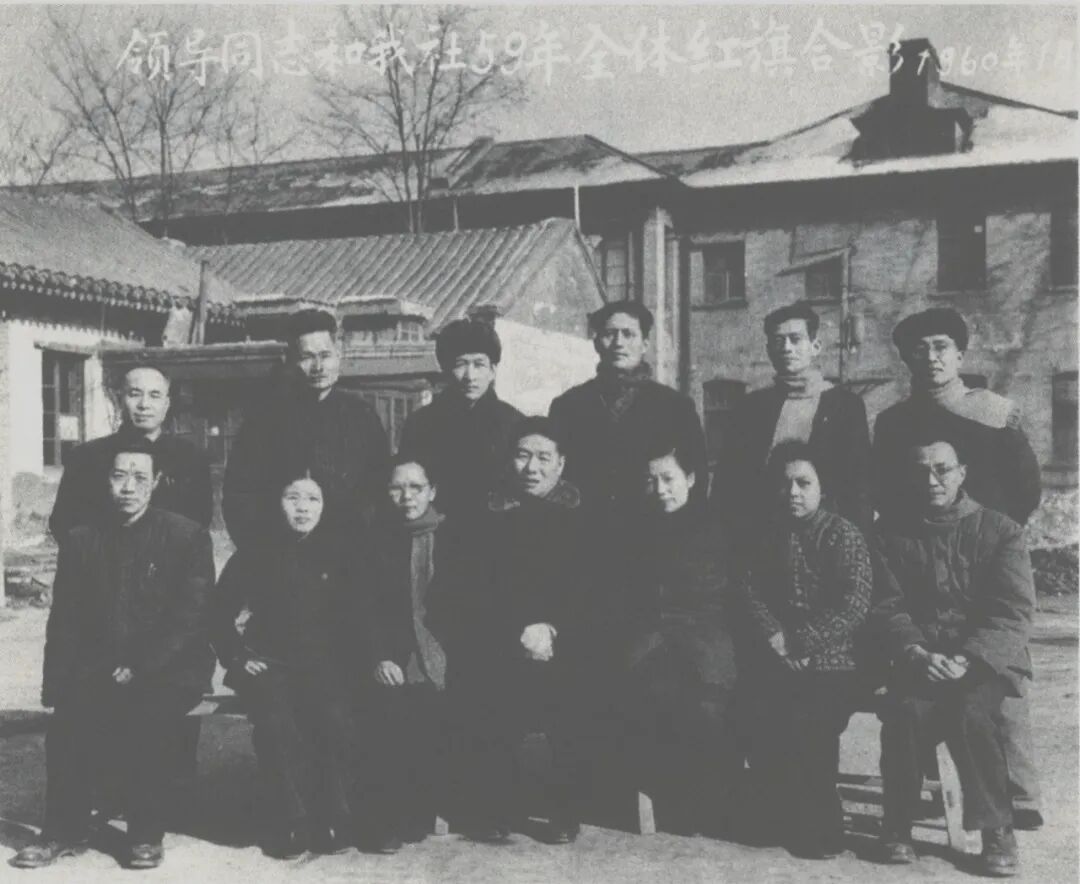 1960年,萨空了(前排左四,时任社长)和59年人民美术出版社“三八”红旗手合影,前排左三为王叔晖