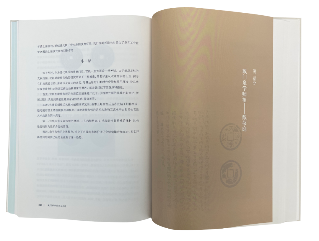 戴志强先生学生们的文章,则多怀着对师祖学行的仰止之心,深入探稽拾遗。如陆昕的《戴葆庭致骆泽民信札解读》,从书信往来为我们生动展现了戴葆庭先生为人处世的谦诚和学识的渊博。宋捷的《戴葆庭钱币鉴定印章》一文,为我们概述了在不同时期、不同情景下戴葆庭先生不同印章的使用状况。而作为戴门弟子,陈宝祥先生发起并建立了戴葆庭钱文化博物馆。一篇《山阴道上泉源流长》,使我们了解到这个博物馆的筹划、建立及其目的。