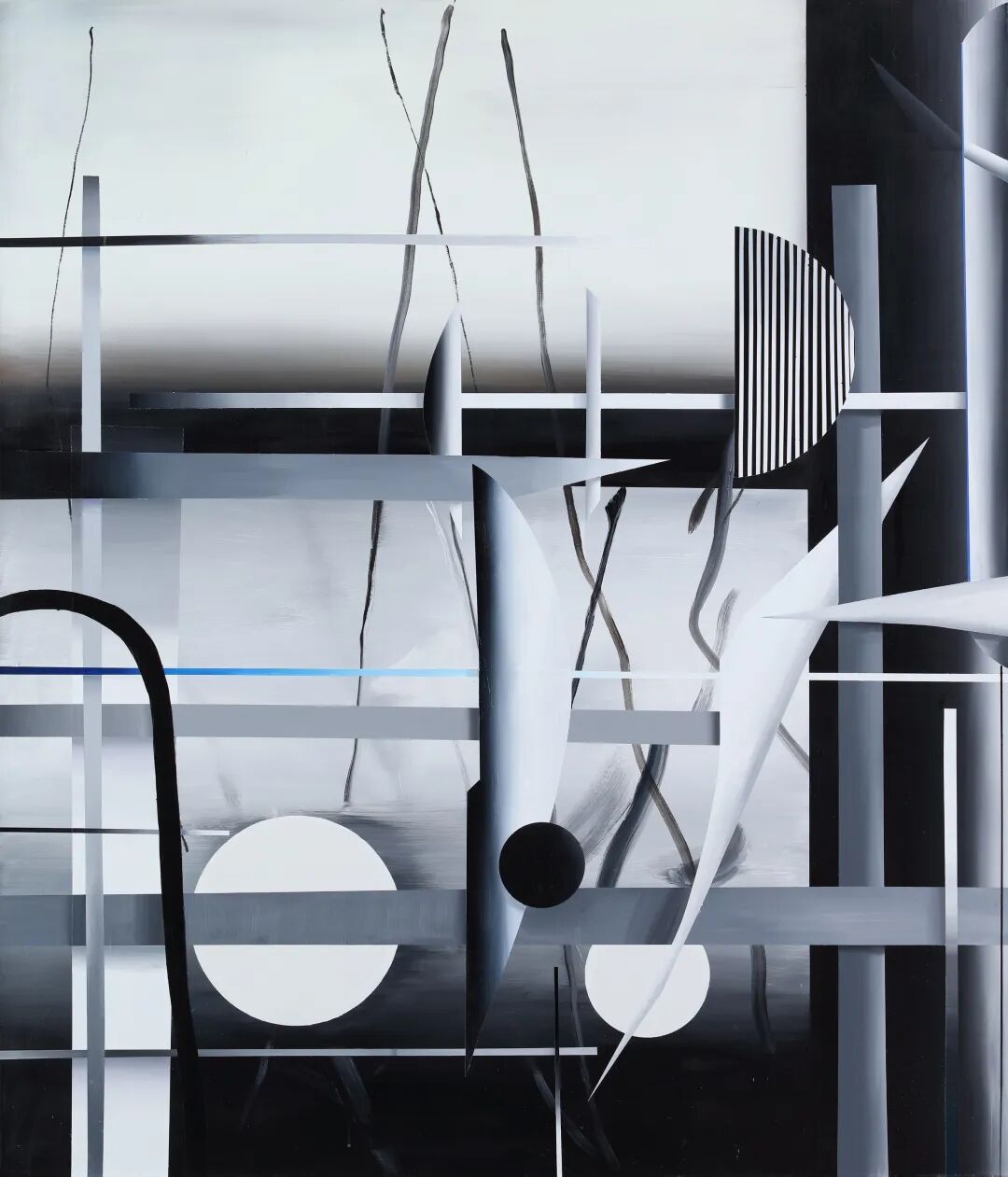 陈元隆的作品,通过这几年的沉淀,作品在多重结构的架构中自我控制并建立由近及远的秩序,是他的抽象对自我所感知的主观世界拥有支配,用流动的笔触去拉开规则的距离,被无形中延伸的秩序裹挟着融入其中,表现出一种井然有序的自信。每一个色块和线条顺应着某种节奏,前后、虚实渐变和左右之间相互博弈所形成的状态对内部结构形成平衡的约束,并潜移默化的在这种秩序中寻找自己的位置,继而呈现出一种力量感、空间感,因为力量的核心是秩序。陈元隆有步骤的吸收并改造,在画面中融合成一种新秩序。
