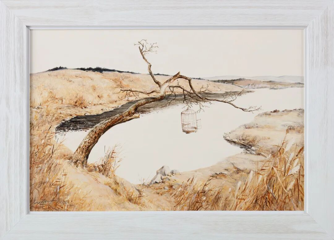 吴谦的画作以东方美学为本,结合了西方当代艺术和抽象表现主义的画风,又深受老庄道学的影响,表现出“无为、淡泊”的精神,是中国传统人文水墨画的延续,同时通过西式绘画方式呈现出来。