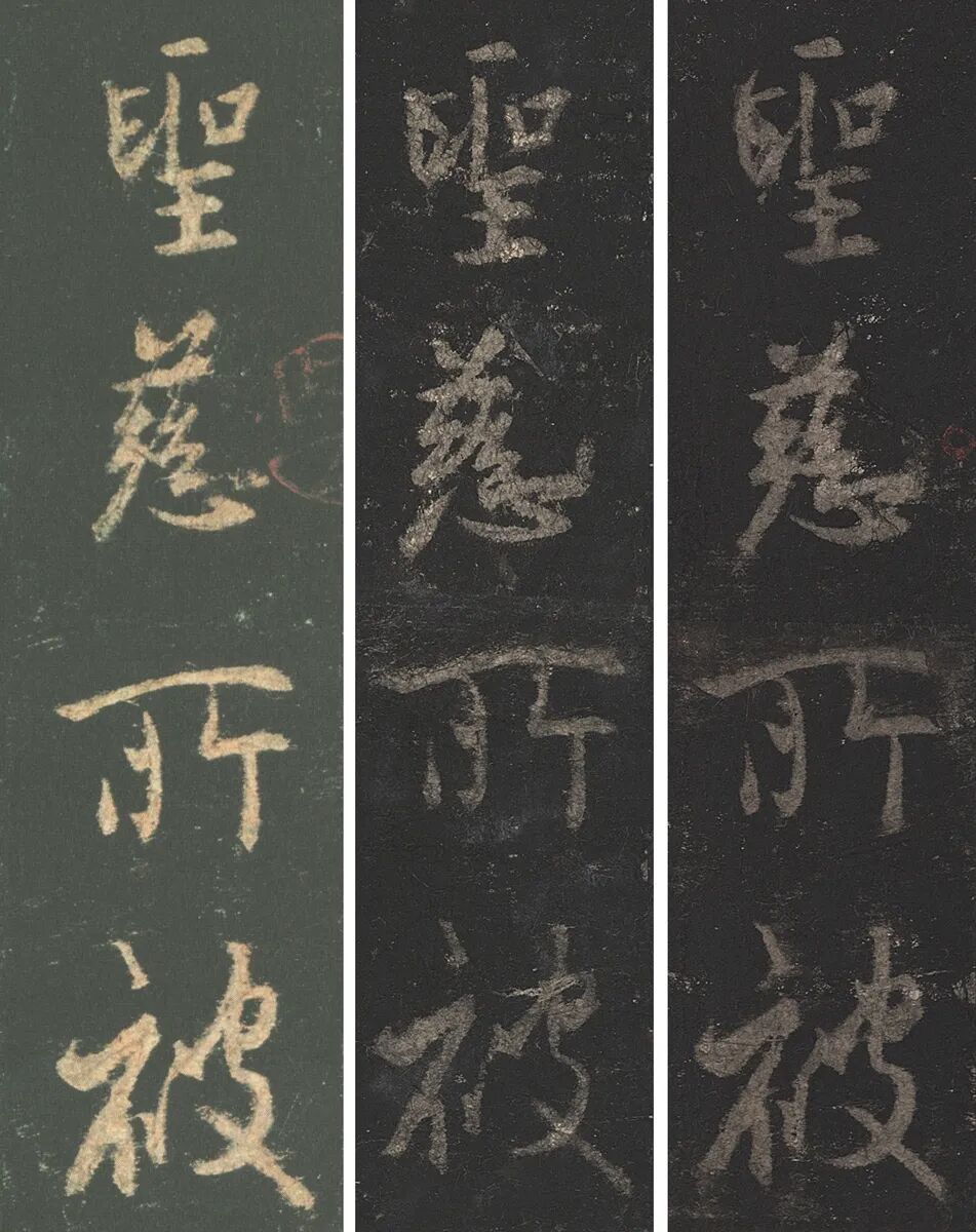 《唐怀仁集王羲之书圣教序》,全称《唐怀仁集晋右军王羲之书大唐三藏圣教序(附心经)》。唐咸亨三年(672)十二月立于长安大慈恩寺,是中国书法史上第一块集字碑刻,有“三绝碑”、“千金碑”之盛名。此碑碑文由唐太宗《大唐三藏圣教序》、敕答、太子李治《述三藏圣记》、笺答及玄奘所译《般若波罗蜜多心经》组成,文字由长安弘福寺沙门怀仁从唐内府所藏王羲之墨迹中所集,倾注二十五年心力而成。北宋拓《唐怀仁集王羲之书圣教序》(韩逢禧旧藏、杨宾等七家题跋)鉴藏印:韩逢禧书画印(朱) 韩逢禧印(白) 屋舟(朱) 耕夫审定(朱) 项士端印(朱) 项士端印(白) 国衡氏(朱) 程廷镜印(白)项士端印(白朱) 荣屏所藏(白) 项应庚印(白) 元白父(朱) 擥秀廔(朱) 赤泉杨氏图书(朱) 吴未央印(白) 布衣杨宾(白)可师(朱) 祀竈生(朱) 梅卿(朱) 馥(朱) 鹿山(朱) 景劒泉鉴赏之章(朱) 劒泉过眼(白) 蓉屏所藏(白)说明:明清两代经韩逢禧、项士端、姜实节、李明古、李馥、陆锺辉、程廷镜、景剑泉等递藏。杨宾、方亨咸、李馥、陈汝楫、先著、方世举、许世英七家题跋。出版:许宝驯、王壮弘等编,《书法自学丛帖·行草上》P147-196,上海书画出版社,1985年。著录:王壮弘撰,《艺林杂谈》P83,(十四.上海书画出版社《书法自学丛帖行草》辑入,北宋拓本),上海书画出版社,2008年。出版:许宝驯、王壮弘等编,《书法自学丛帖·行草上》P147-196,上海书画出版社,1985年。著录:王壮弘撰,《艺林杂谈》P83,(十四.上海书画出版社《书法自学丛帖行草》辑入,北宋拓本),上海书画出版社,2008年。集字成书此为首创,此碑摹刻王羲之书法极精,且自真迹出,故为世所重,历代皆为习王书之首选范本。明赵崡《石墨镌华》云“此碑为百代书法楷模,今时尤重”,清初杨大瓢谓“右軍筆法猶可想見者,唯西安府學聖教一碑”。张彦生《善本碑帖录》云:“此碑自刻成为世所重,捶拓无虚日。”碑字面貌自宋以来出入颇大,故世以碑未断之前宋拓本为重,又北宋更罕。此次西泠秋拍上拍本即为《唐怀仁集王圣教序》北宋拓本,碑文十五行末“故知圣慈所被”之“慈”字仅左上至右下有斜裂纹,南宋本右上损连一片,然“慈”字久负盛名,故存世南宋拓本“慈”多填描;廿一行“久植胜缘”之“缘”字左下未与石花泐连,尚有余石;此两字为区分《集王圣教序》北、南宋拓本之重要考据。以下考据字对比图,右:西泠秋拍本,中:南宋拓本,左:东京博物馆藏朱卧庵本(南宋拓)除此之外,首行“圣教”之“圣”“壬”部首笔与竖笔笔画连接处,北宋完好,南宋本泐粗;三行首“盖闻二仪有像”之“盖”字上部,北宋完好,南宋笔画漫漶,“潜寒暑以化物”之“潜”字,右部左上“旡”莫笔南宋已泐为一横,“贤哲罕穷其数”之“穷”字,上点的牵丝北宋完好,南宋泐连;四行“在智犹迷”之“迷”字,“米”部与“辶”部间北宋未连,南宋泐连(此处南宋拓本亦多有填描,然字口多不洁净),“举威灵而无上”之“上”字,竖笔与横划之间,北宋完好,南宋泐连;五行“民仰德而知遵”之“而”字撇笔,北宋完好,南宋泐粗;七行“有玄奘法师者”之“师”字,右半北宋完好,南宋两竖笔间有泐痕;十一行“将日月而无穷”之“月”字,中二横笔北宋完好,南宋与右竖泐并;十三行“谬承褒赞”之“褒”字,衣部左撇笔,北宋完好,南宋泐粗;十七行“转双轮于鹿菀”之“鹿”字,中部北宋完好,南宋泐连;十八行“泽及昆虫”之“昆”字,左下匕部北宋完好,南宋损;廿四行“波罗蜜多心经”之“蜜”字“必”部北宋完好,南宋泐连,廿七行“依般若波罗蜜多,故得阿多罗”之上一“多”字,上夕部北宋完好,南宋泐连。以上以此本校南宋本,均合。另以此北宋拓《集王圣教序》较之南宋拓本,不特点划爽利精洁,其纸墨之厚重古朴亦远过之。