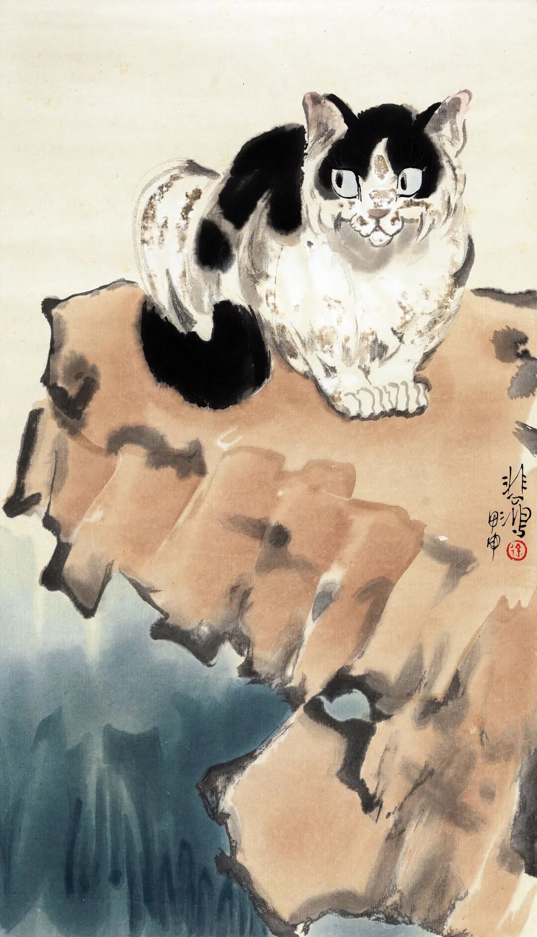 徐悲鸿木版水印 猫石图