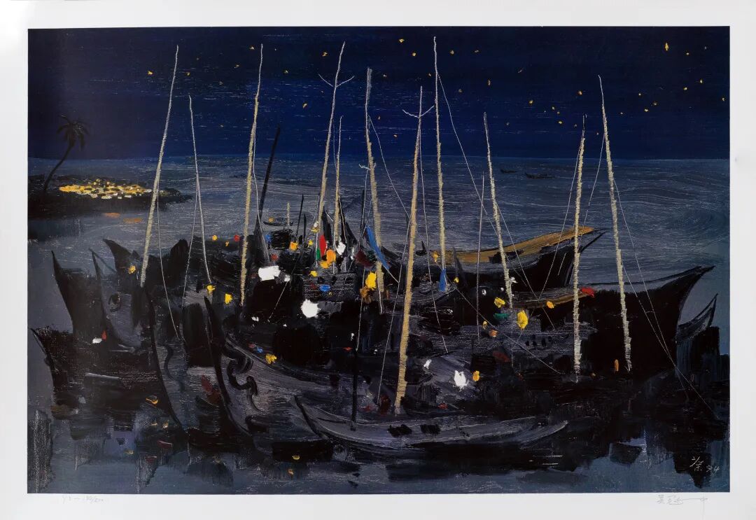 吴冠中版画 海之夜