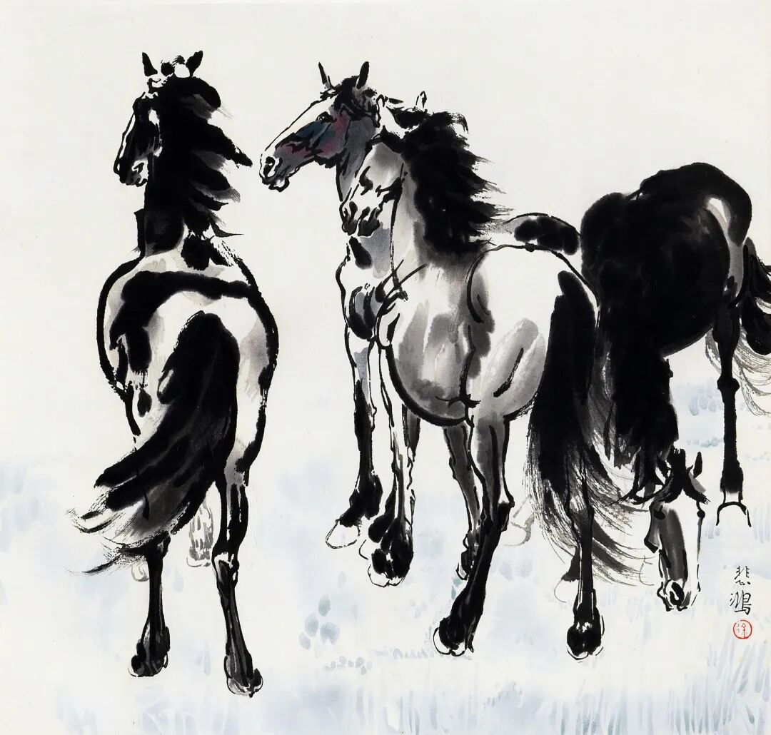 徐悲鸿木版水印 群马图