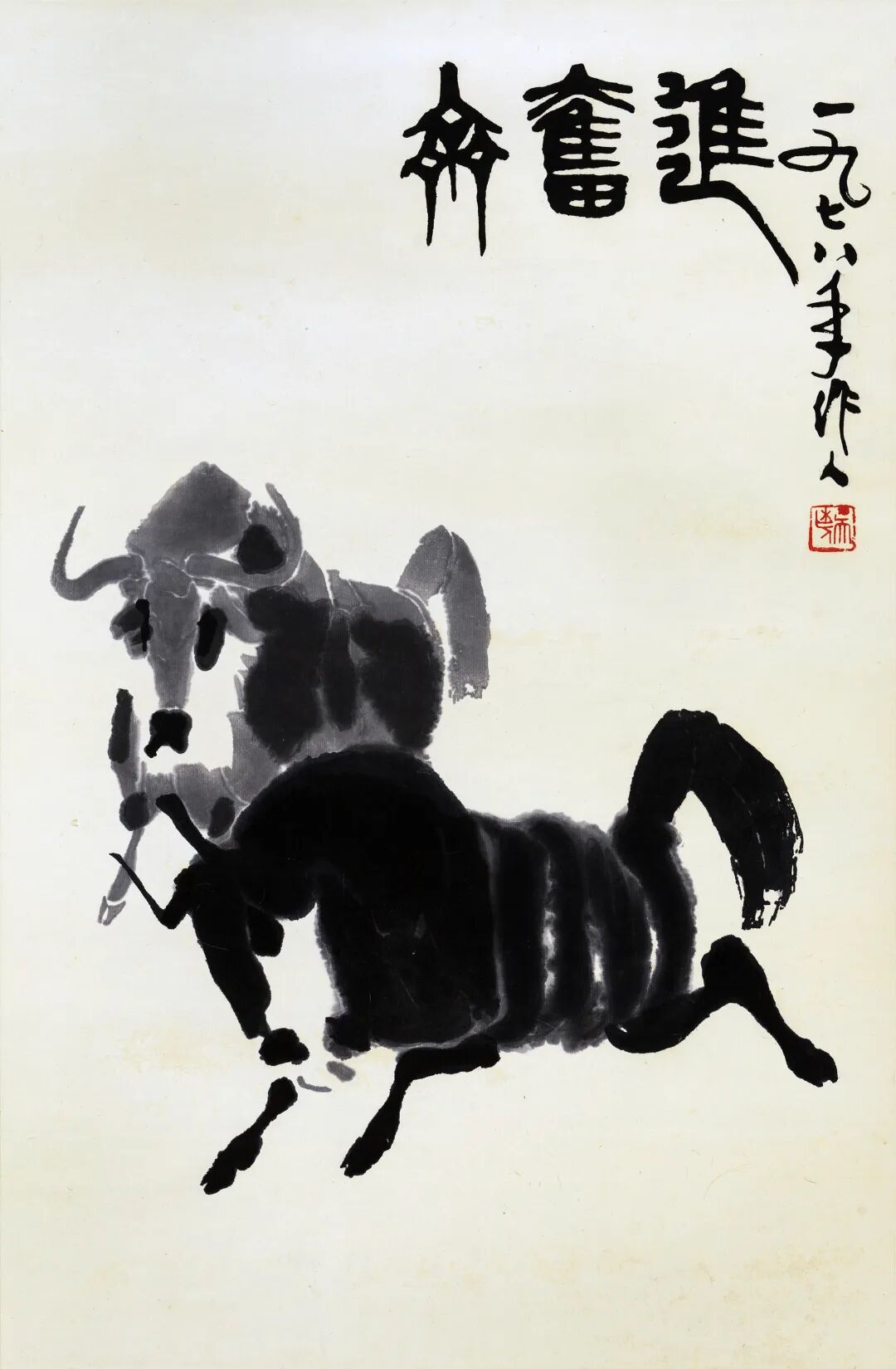 吴作人木版水印 奋进